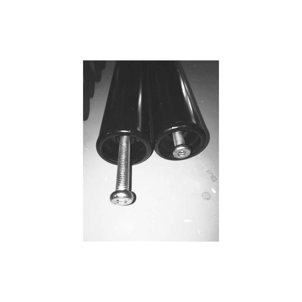 Pieds en métal de 25 cm ou réglable en hauteur de 23 à 31 cm selon les arrivages (nous consulter), diamètre de 3,8 cm. Fixation via une vis à fixer dans le pas de vis sur le sommet du pied. Dessous des pieds en plastique anti-dérapant. Très solides, ils supporteront tous types de sommiers.