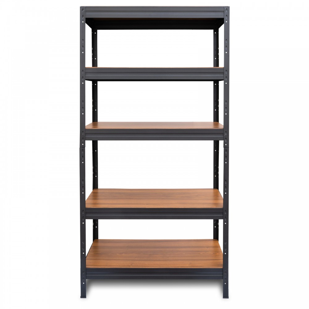 Elle dispose de 5 larges tablettes de 8 mm, en fibres de particules, avec un revêtement de couleur noyer, noyer clair ou gris au choix.