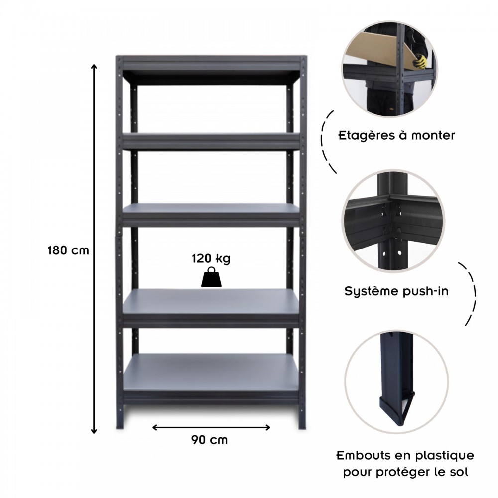 | bulletpointA | Cette étagère en acier noir dispose de 5 tablettes. Elle est parfaite pour votre garage ou votre bureau. |