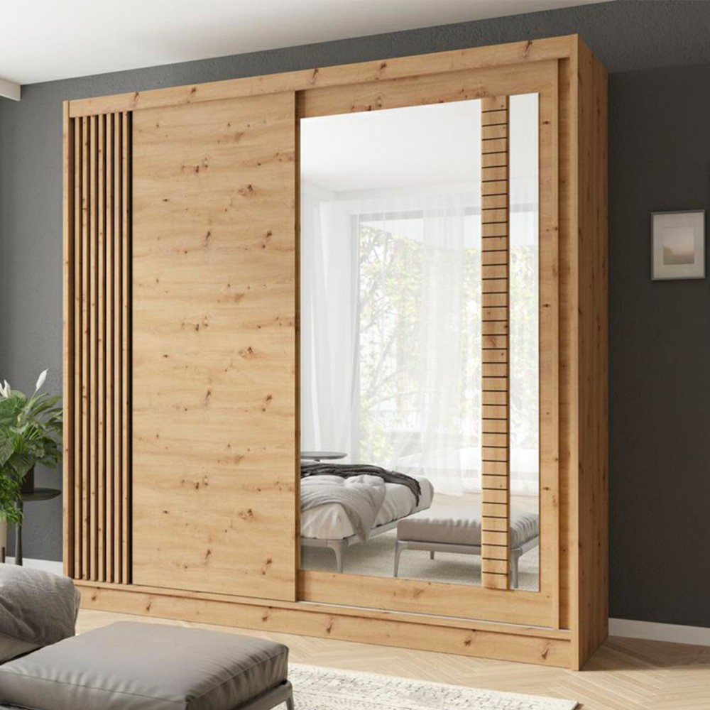 | bulletpointA | Armoire dressing en bois de haute qualité avec portes coulissantes, dont une avec miroir. |