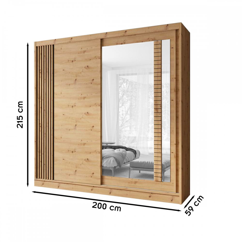 Avec une largeur de 200 cm et une hauteur de 215 cm, cette armoire offre un espace de rangement très généreux.