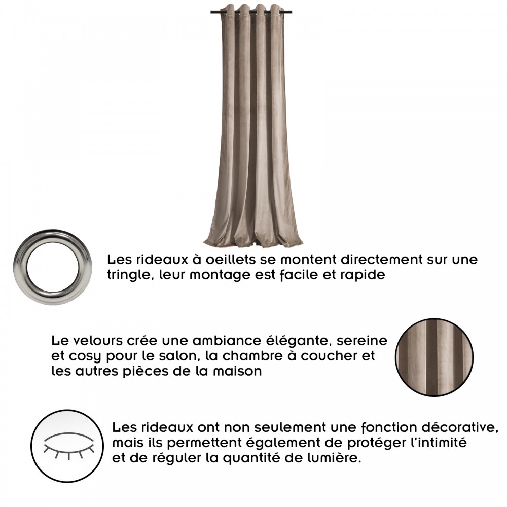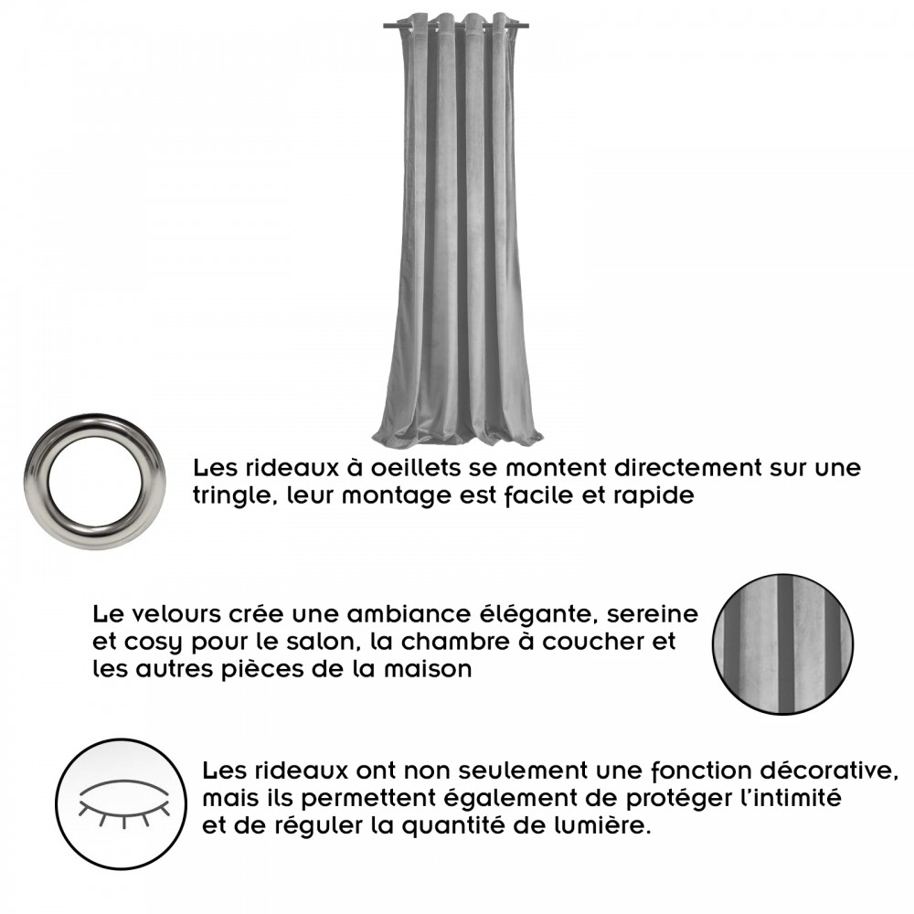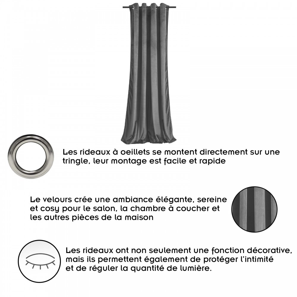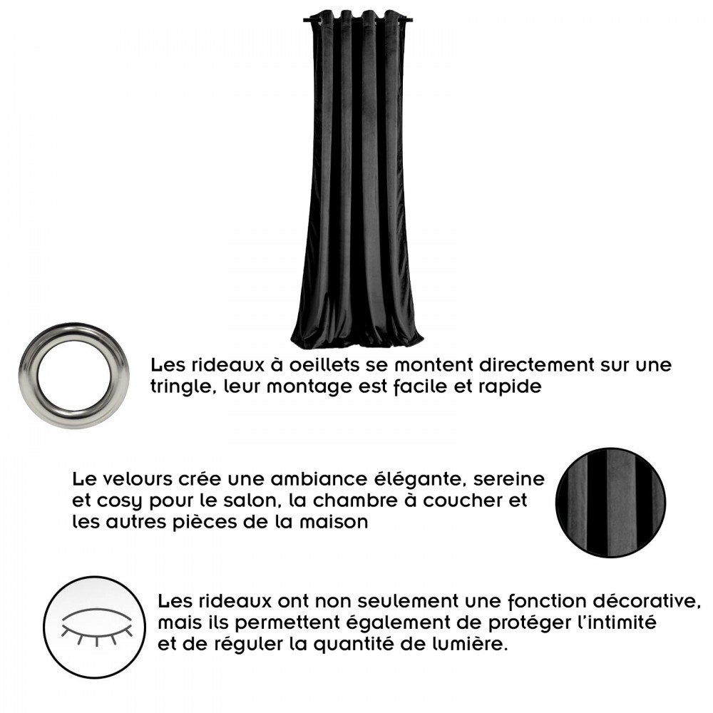 | bulletpointD | Ces rideaux à oeillets en velours sont disponibles en plusieurs coloris. |