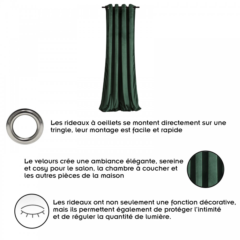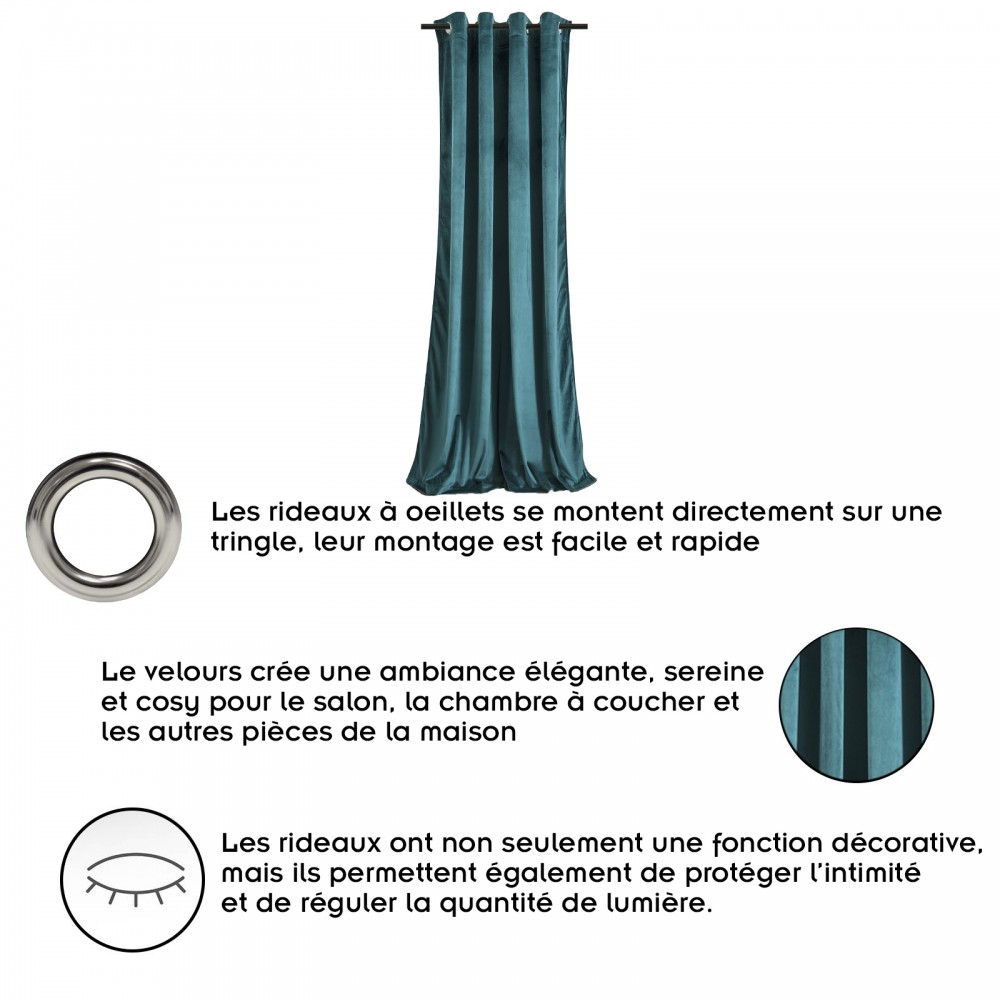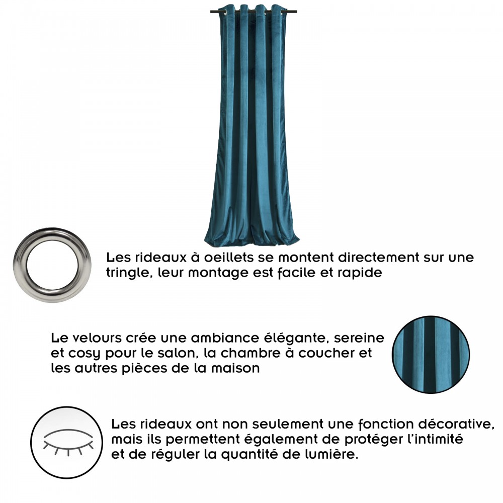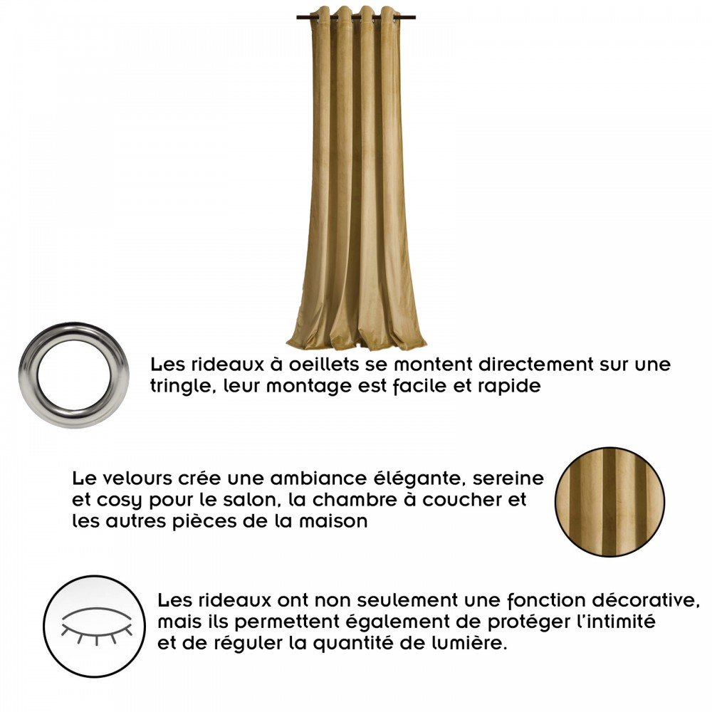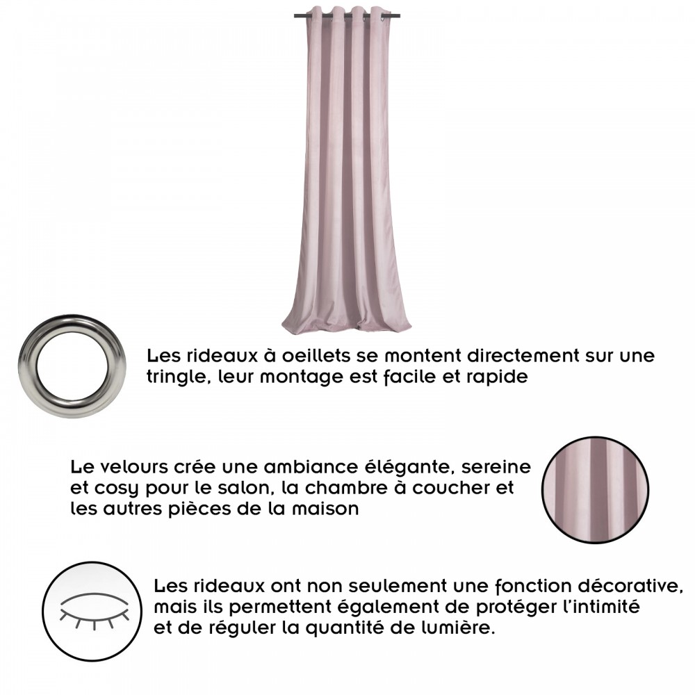 | bulletpointD | Ces rideaux à oeillets en velours sont disponibles en plusieurs coloris. |