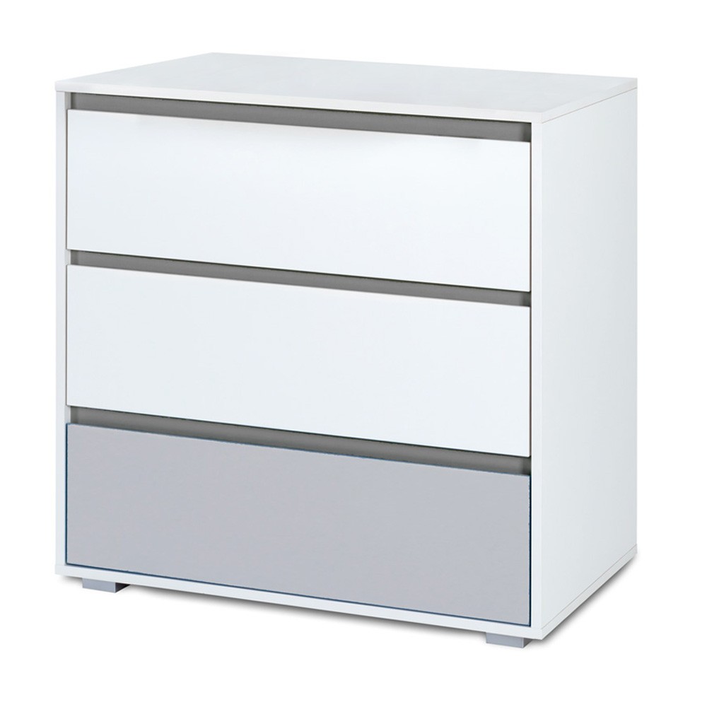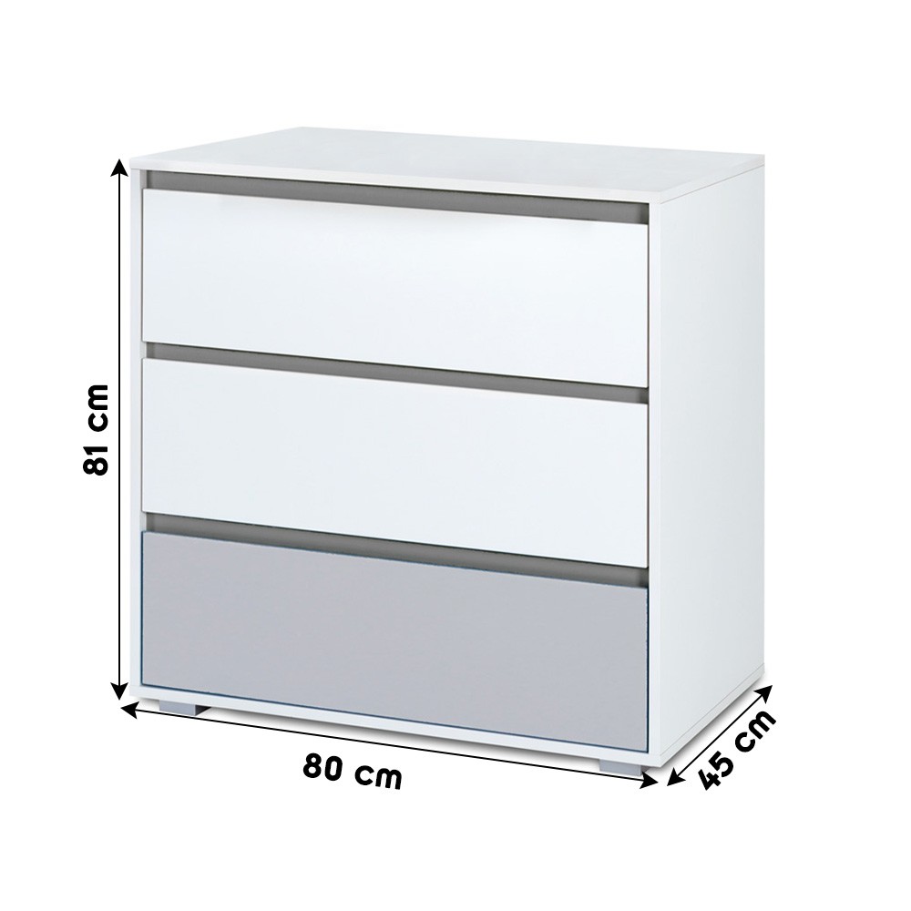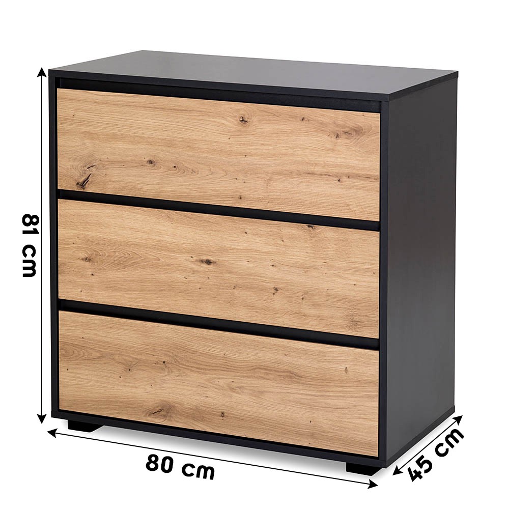 Cette commode est sobre et originale. Elle possède 3 tiroirs fixés sur rails coulissants.