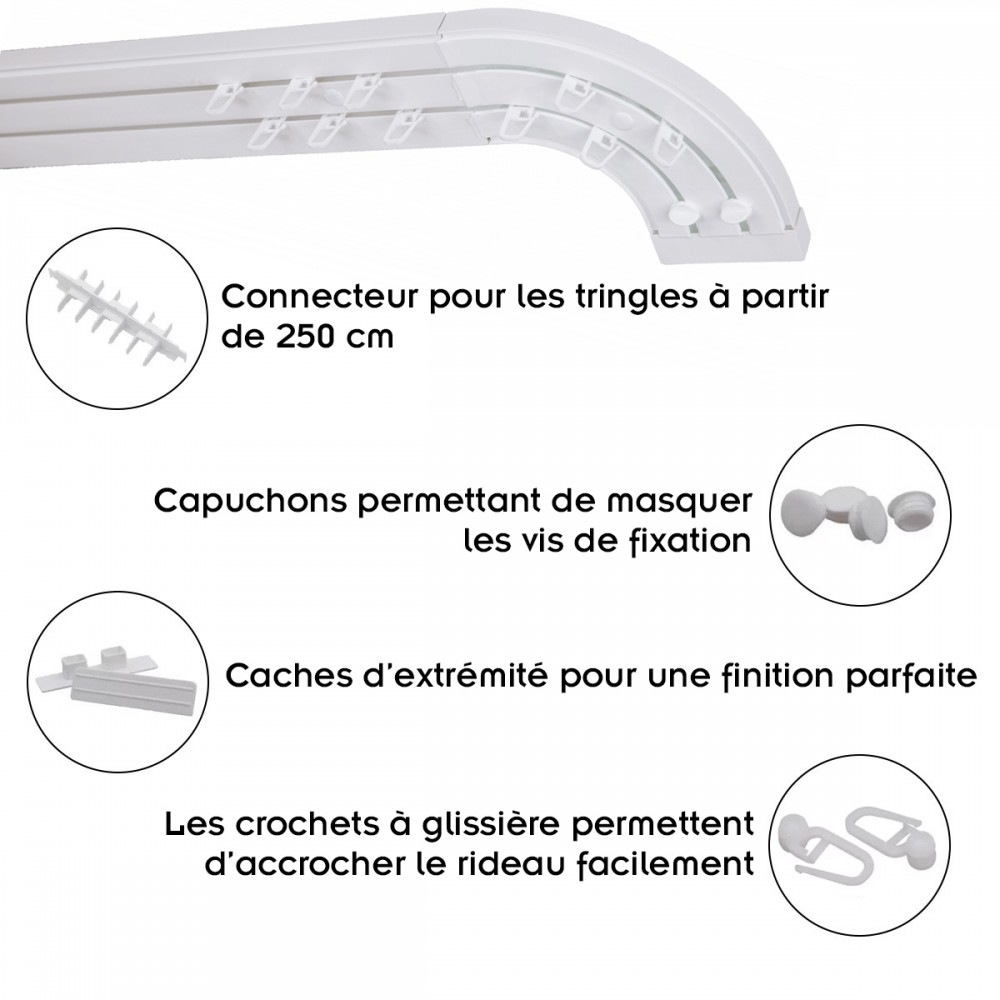 Dimensions double rail courbé : L 120/200/220/300/360 cm x l 6,9 x H 3,5 cm.