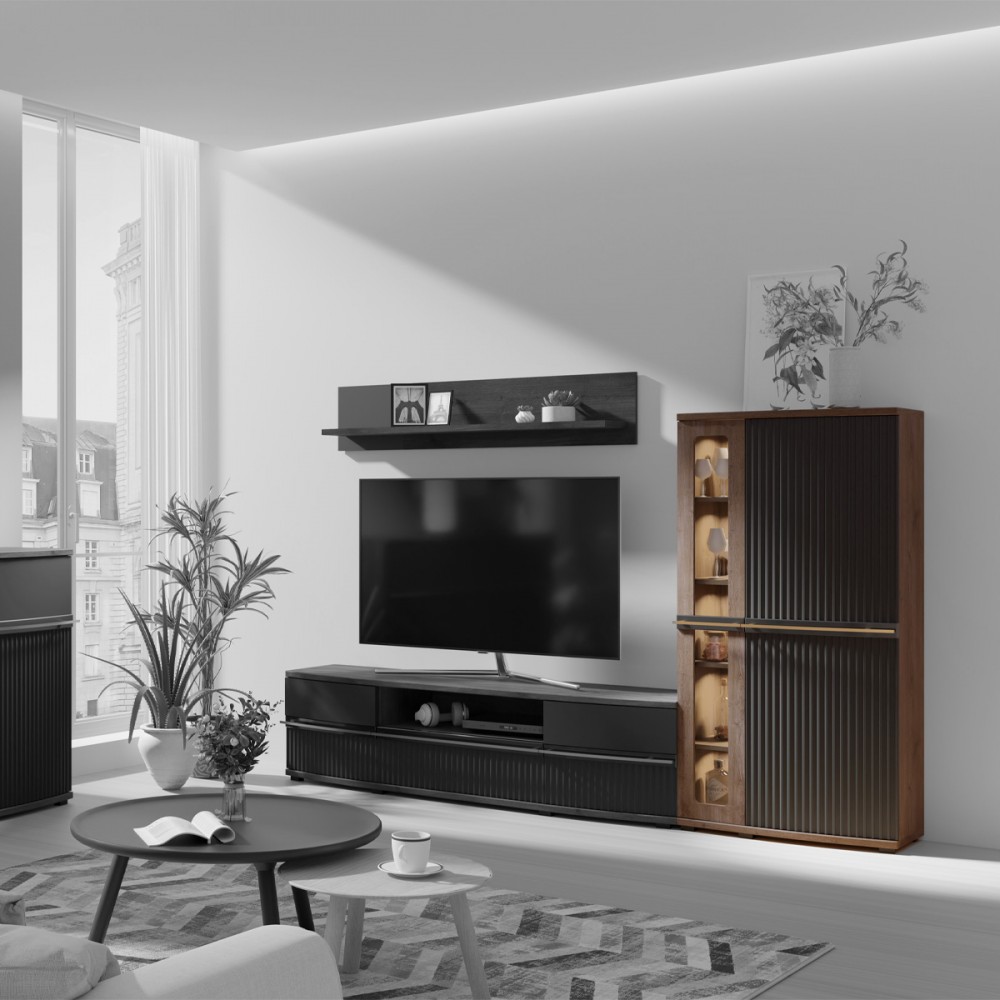 Le caractère du meuble est souligné par les lignes parallèles à l'avant, ce qui fait de lui un élément parfait pour la décoration d'un intérieur moderne.