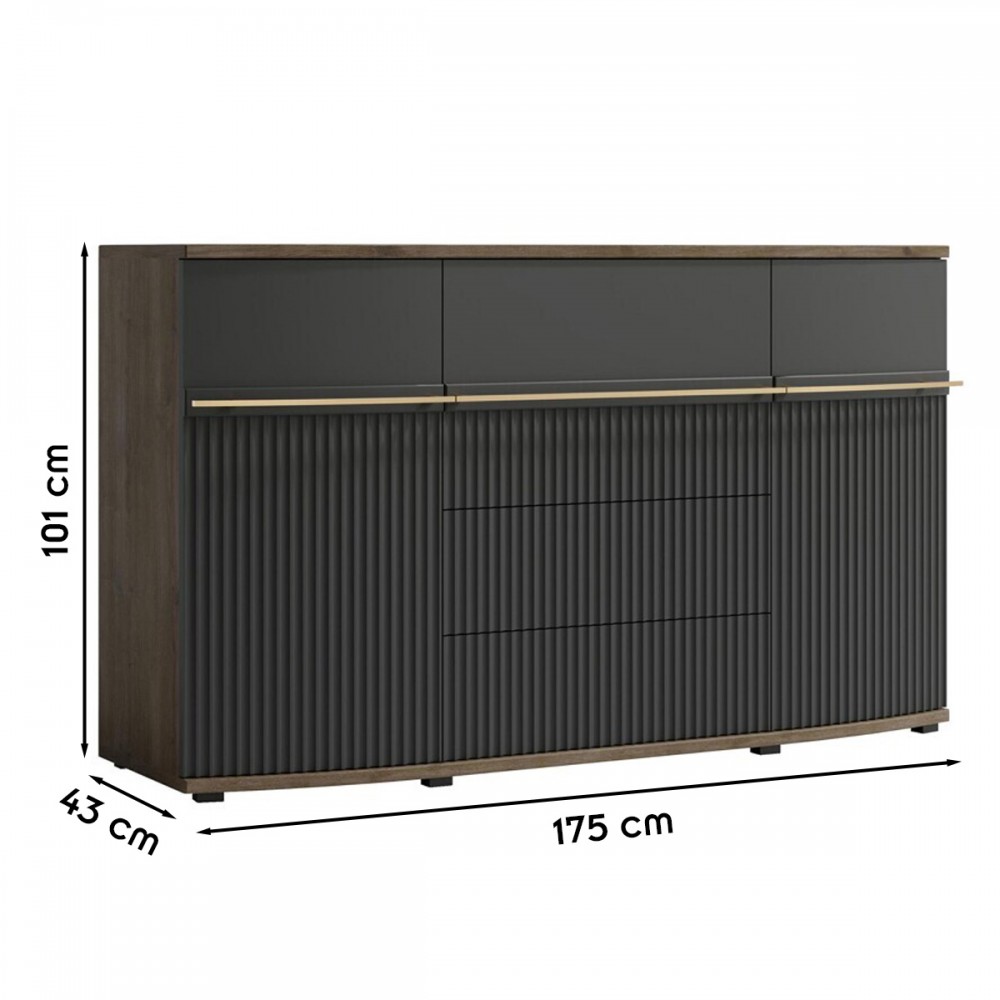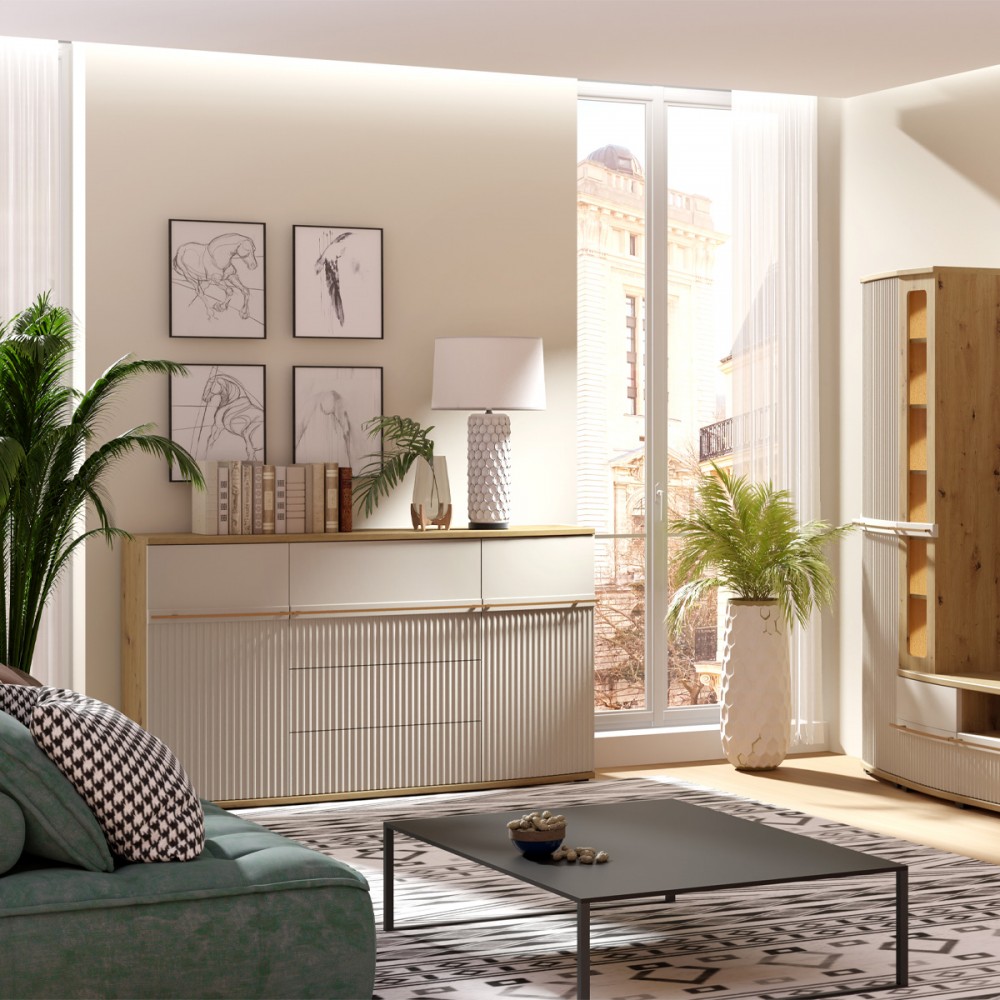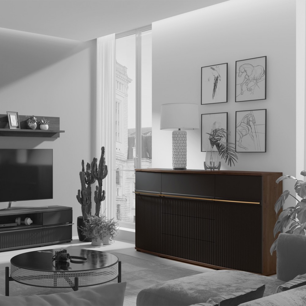 Le caractère du meuble est souligné par les lignes parallèles à l'avant, ce qui fait de lui un élément parfait pour la décoration d'un intérieur moderne.