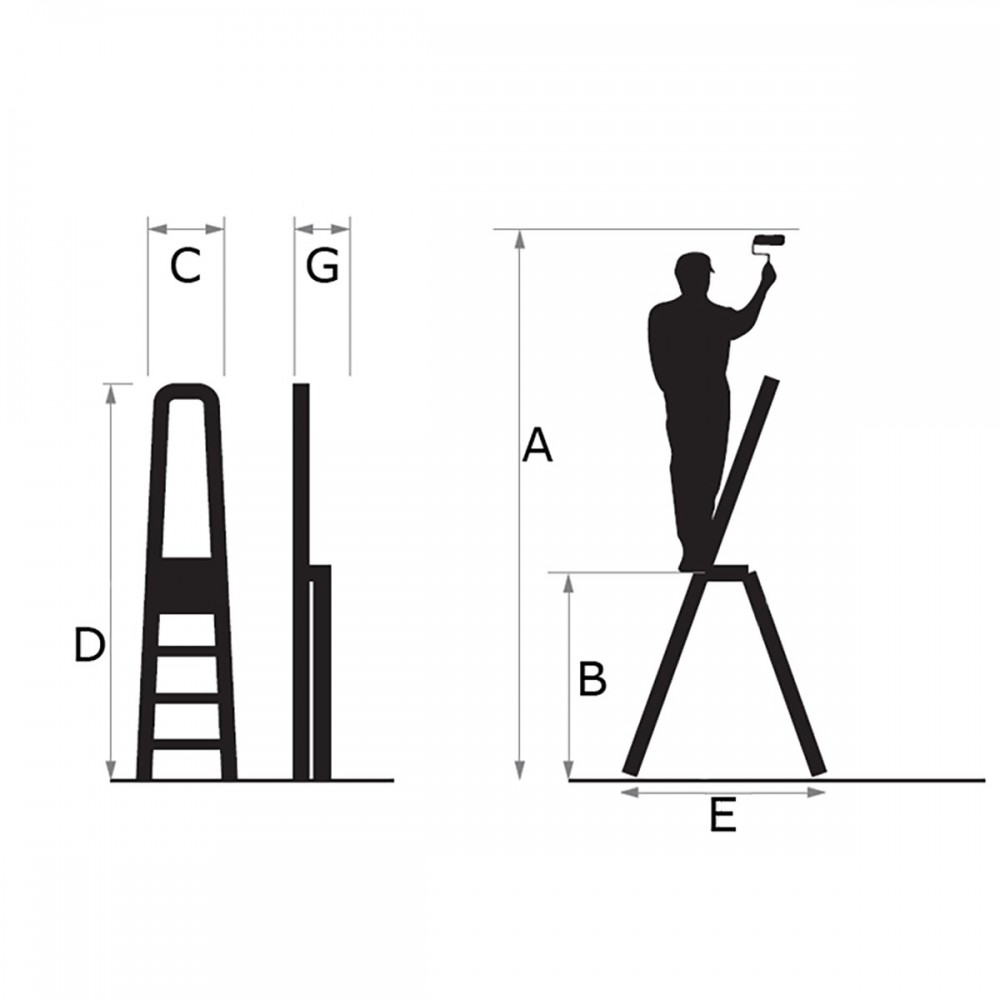 D : 1,7 m / C : 0,45 m / E : 0,92 m. (G : 0,115 m / B : 0,97 m / A : 2,97 m). 5 kg.