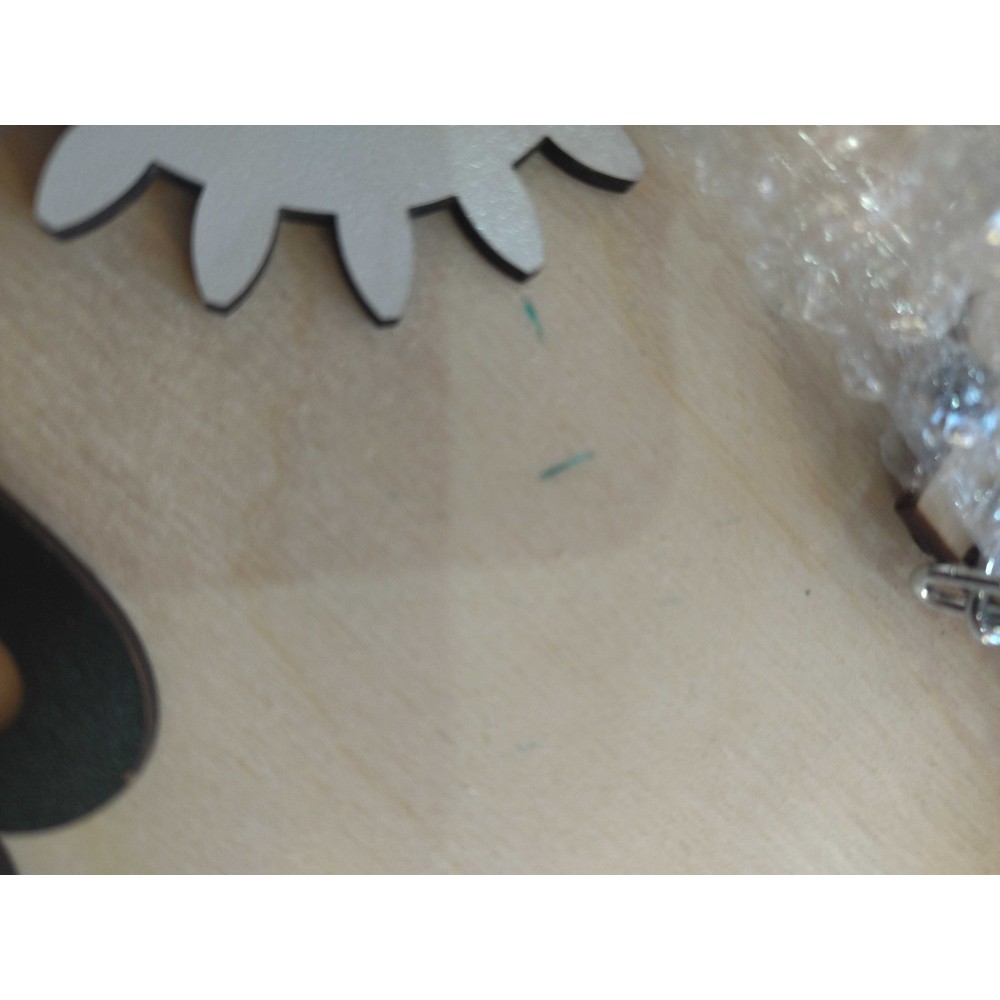 Ce tableau d'activité a un coin abimé et quelques traces vertes (voir photos).