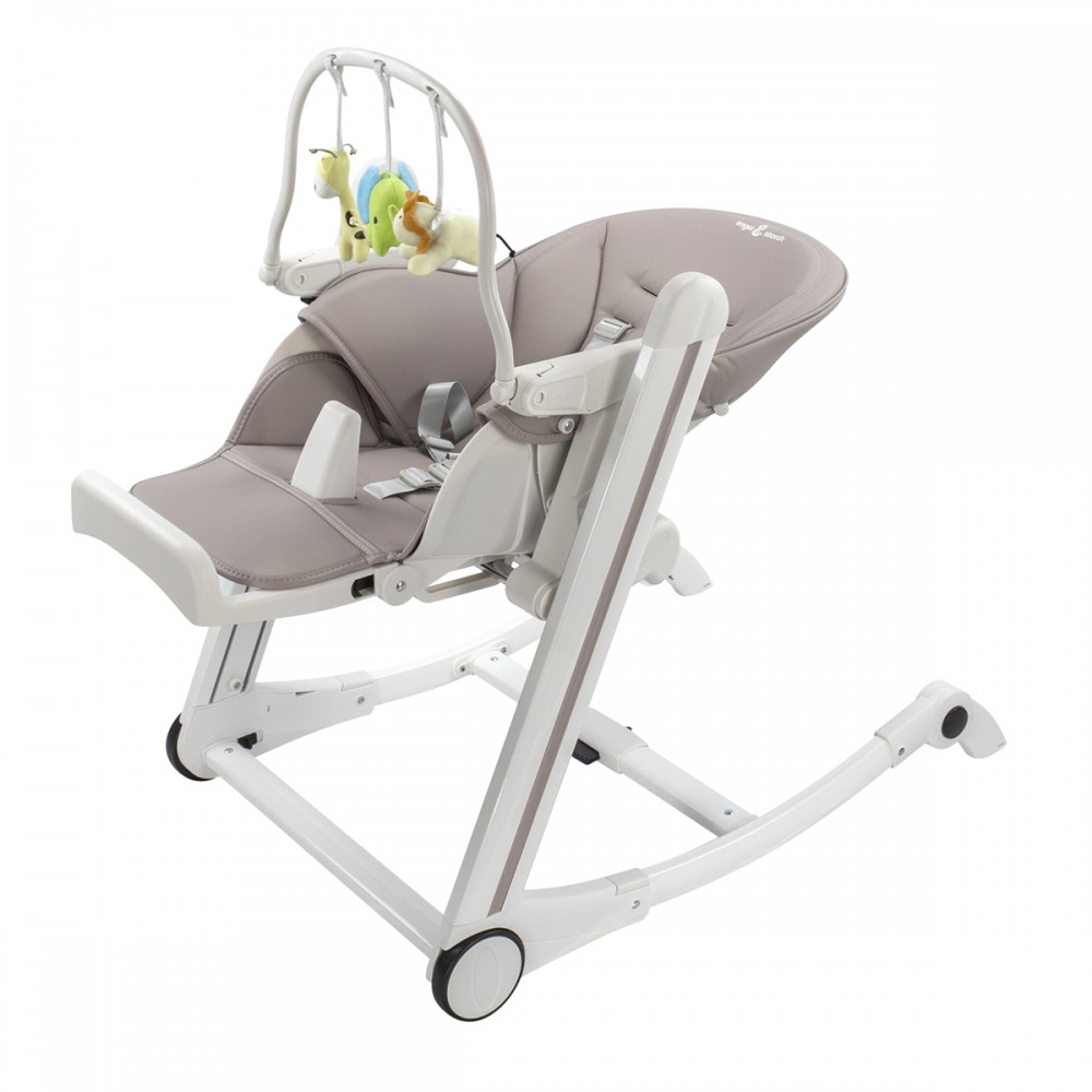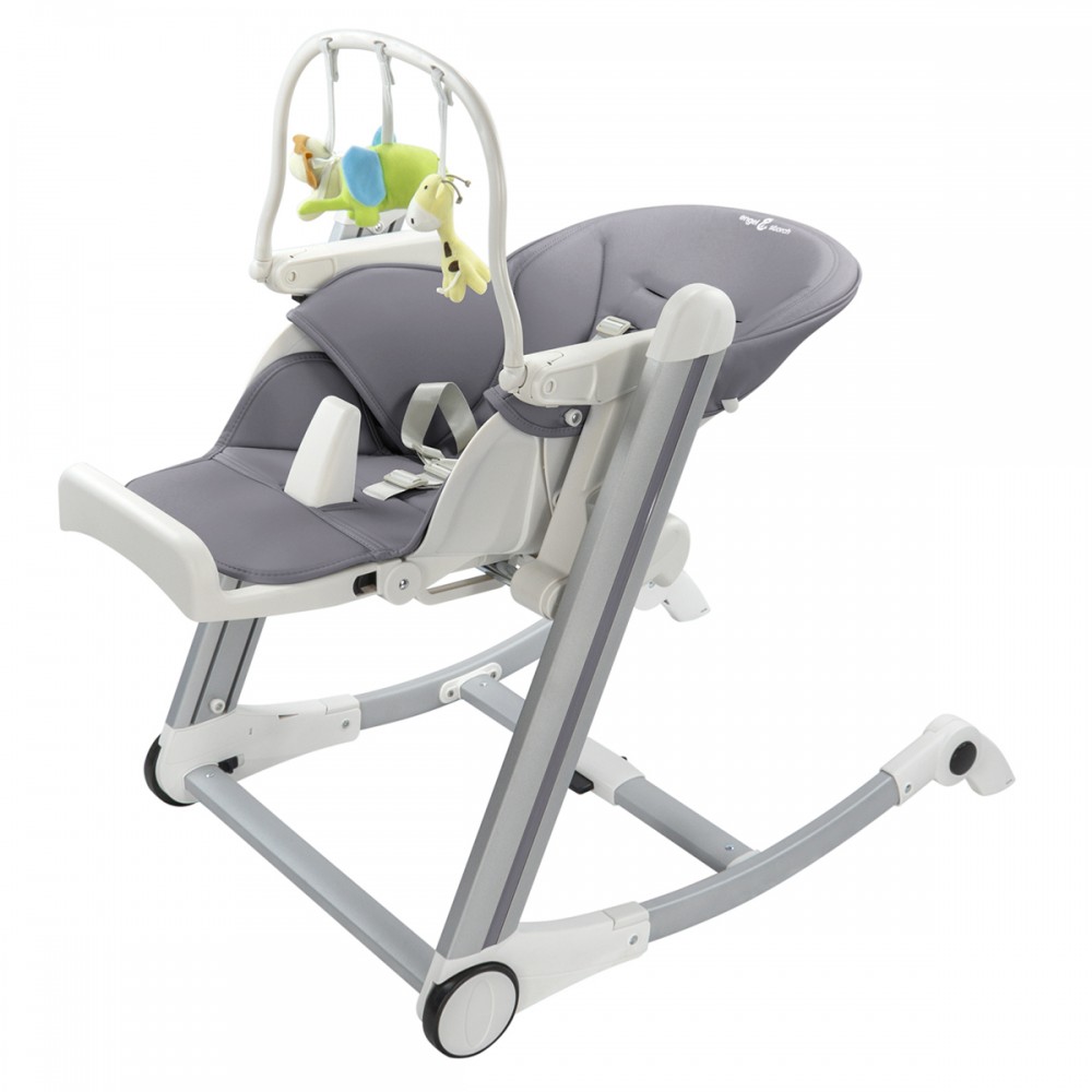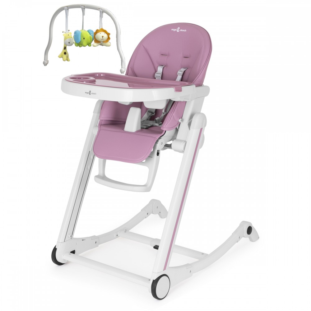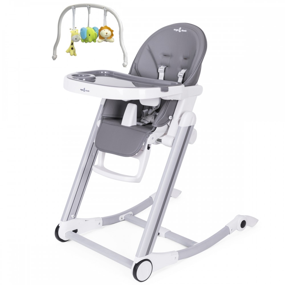 La chaise haute ADELLE inclut une arche de jeu dotée de peluches amovibles.