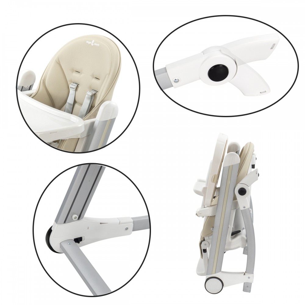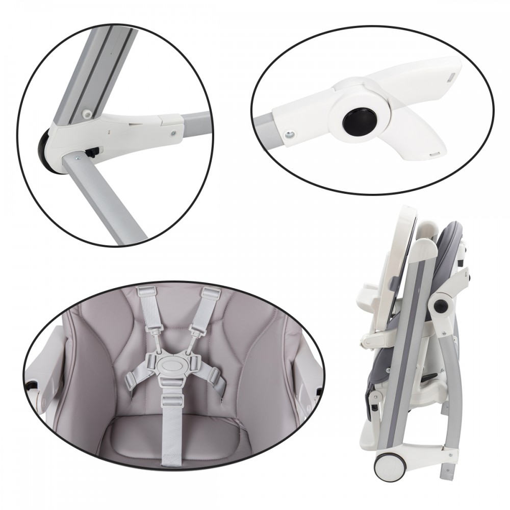 | bulletpointA | Chaise haute pliable avec hauteur de siège et plateau réglable dès 6 mois jusqu'à 15 kg. Repose-pieds réglables. Harnais de sécurité. |