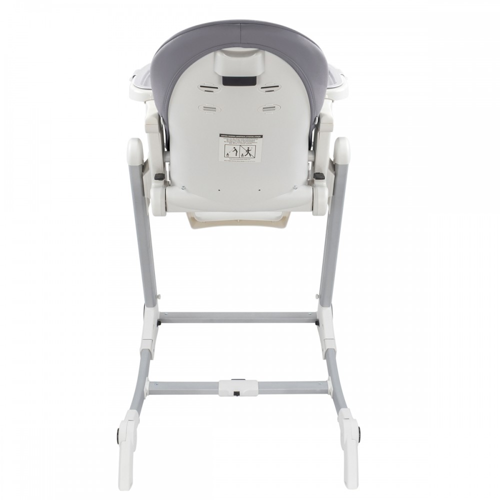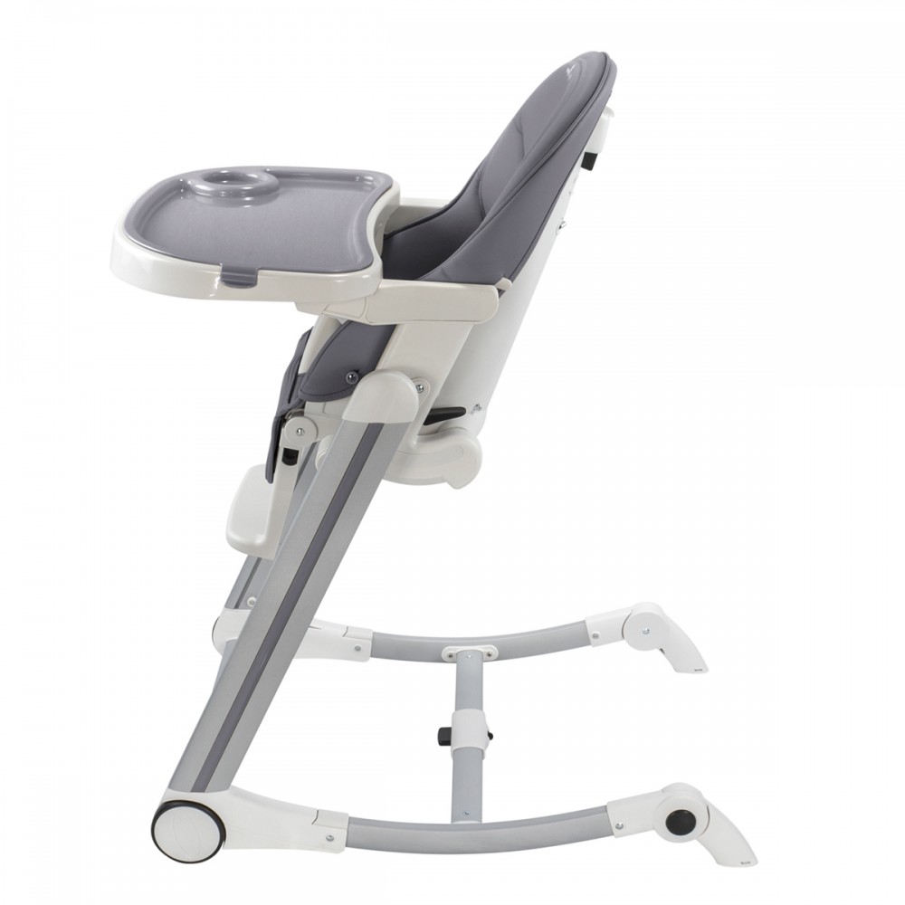 Les roues avant disposent d'un frein. Les roues arrière peuvent être relevées pour profiter de la fonction bascule prévue avec cette chaise haute.