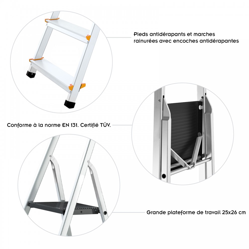 | bulletpointA | Escabeau en aluminium, de 3 à 8 marches. |