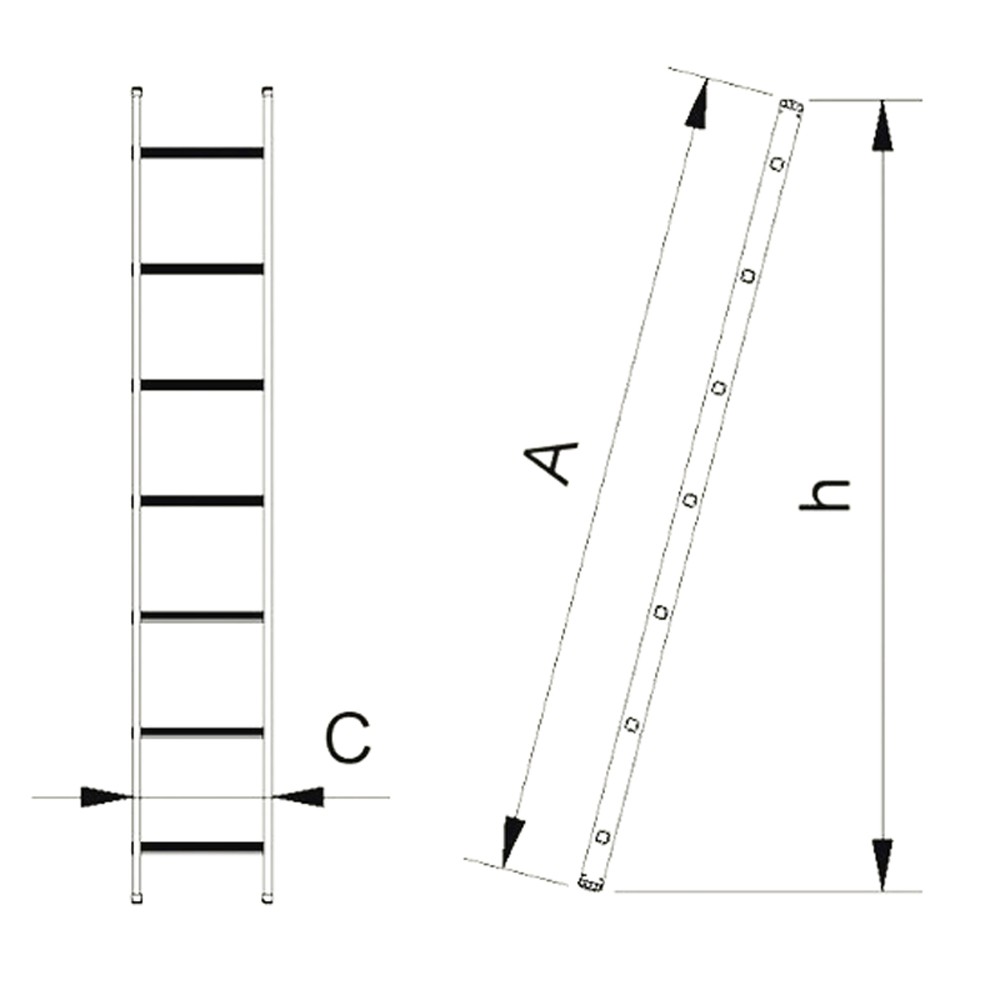 8 marches : A : 2,27 m / C : 362 mm / h : 2,14 m / poids : 3,30 kg.