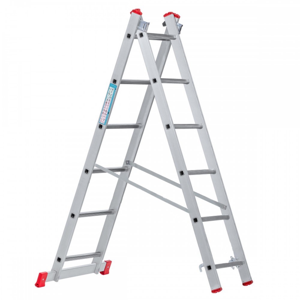 2 x 6 marches : A : 1,70 m / B : 2,25 m / C : 402 mm / D : 460 mm / H : 2,12 m / h : 1,61 m / F : 71 cm, poids : 5,9 kg).