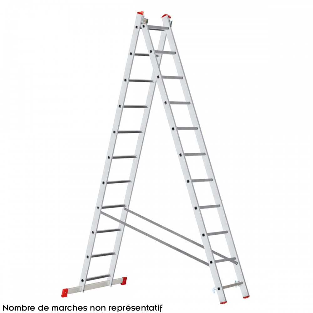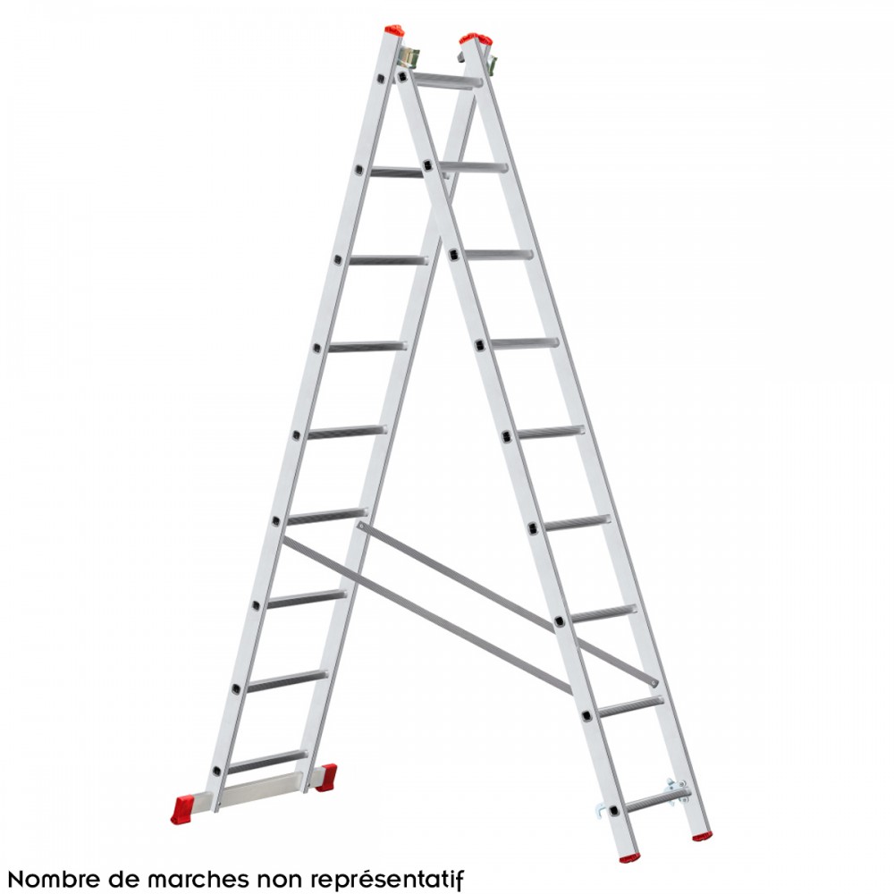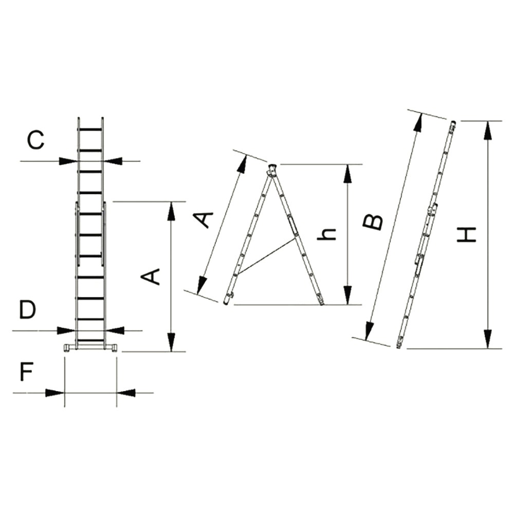 2 x 10 marches : A : 2,82 m / B : 4,51 m / C : 402 mm / D : 460 mm / H : 4,24 m / h : 2,71 m / F : 77 cm, poids : 9,0 kg).