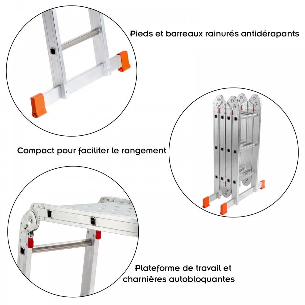 Cette échelle modulable 4x3 marches en aluminium est astucieuse et pratique.