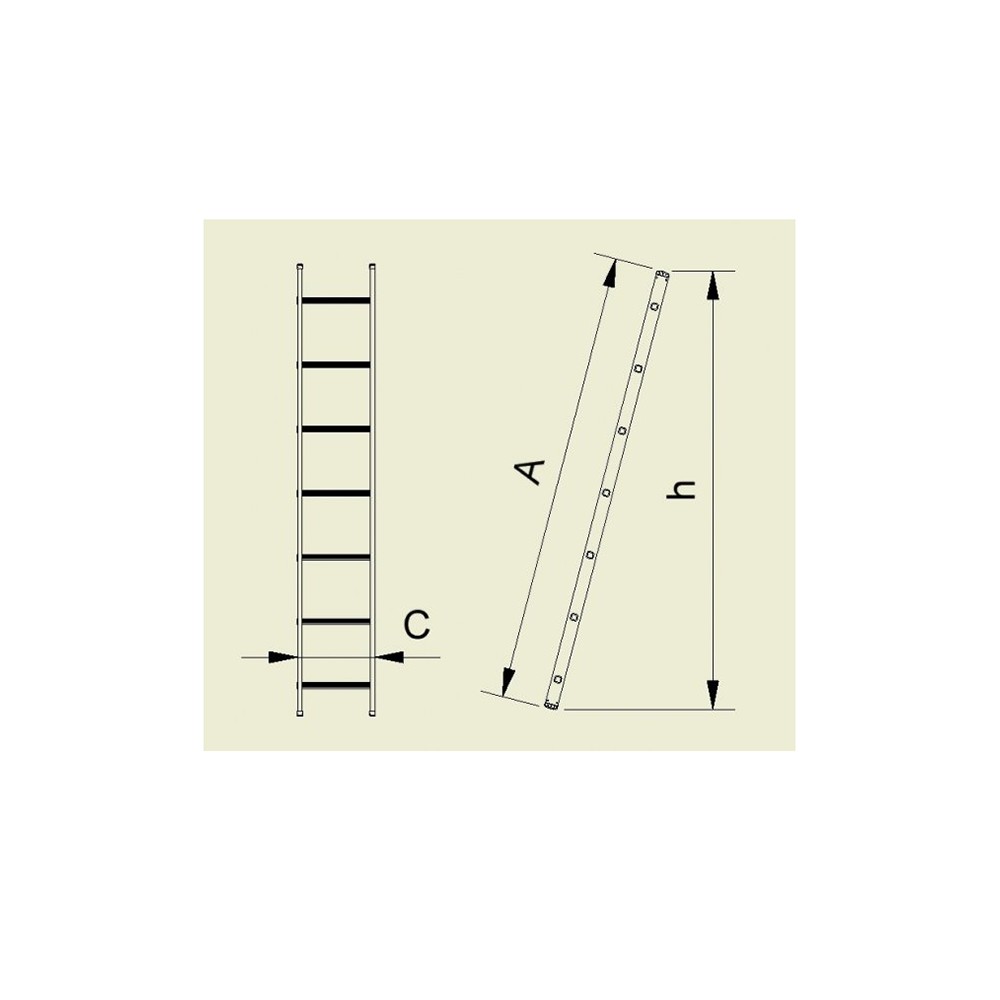 9 marches : A : 2,56 m / C : 340 mm / h : 2,49 m / poids : 3,40 kg.