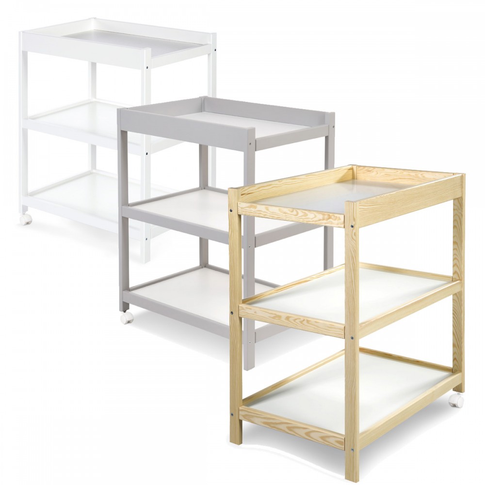 | bulletpointA | Table à langer en bois de pin composée d'un plan à langer et de 2 étagères en MDF mélaminé |