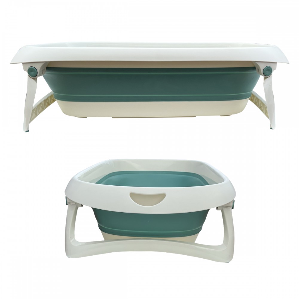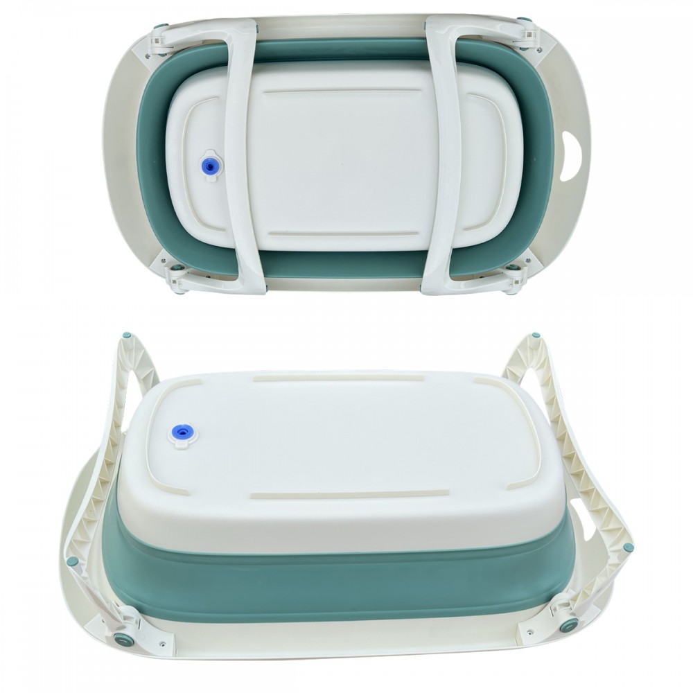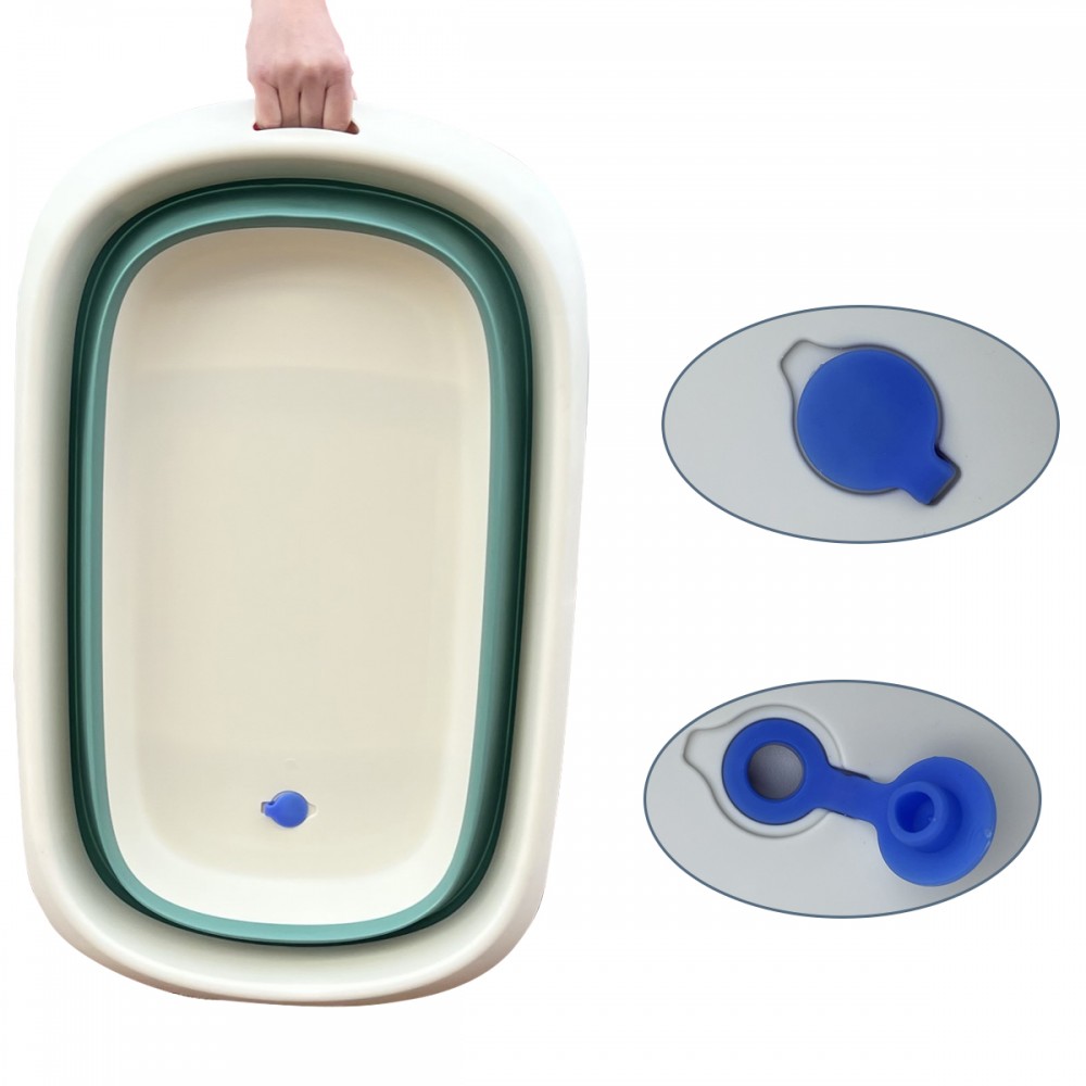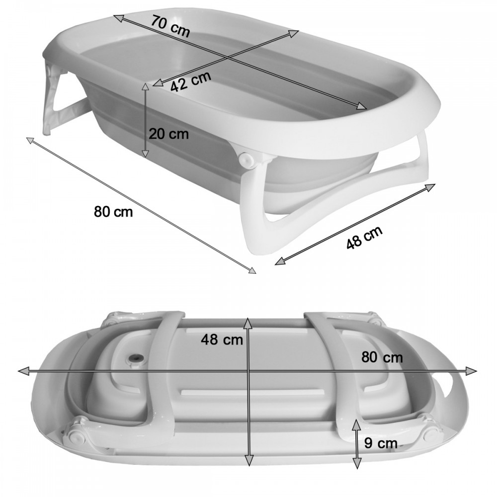 Baignoire spacieuse, pliable ultra-compacte, facile à ranger et à transporter grâce à sa poignée. Les parois souples de la baignoire se plient sur elles-même pour un gain de place maximum et les pieds se rabattent en appuyant les boutons pression situés aux extrémités.