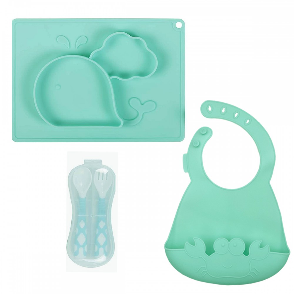 Le repas de votre enfant devient un moment ludique et amusant avec cet ensemble repas en silicone souple aux couleurs attrayantes composé d’une assiette, d’un bavoir et de 2 couverts.
