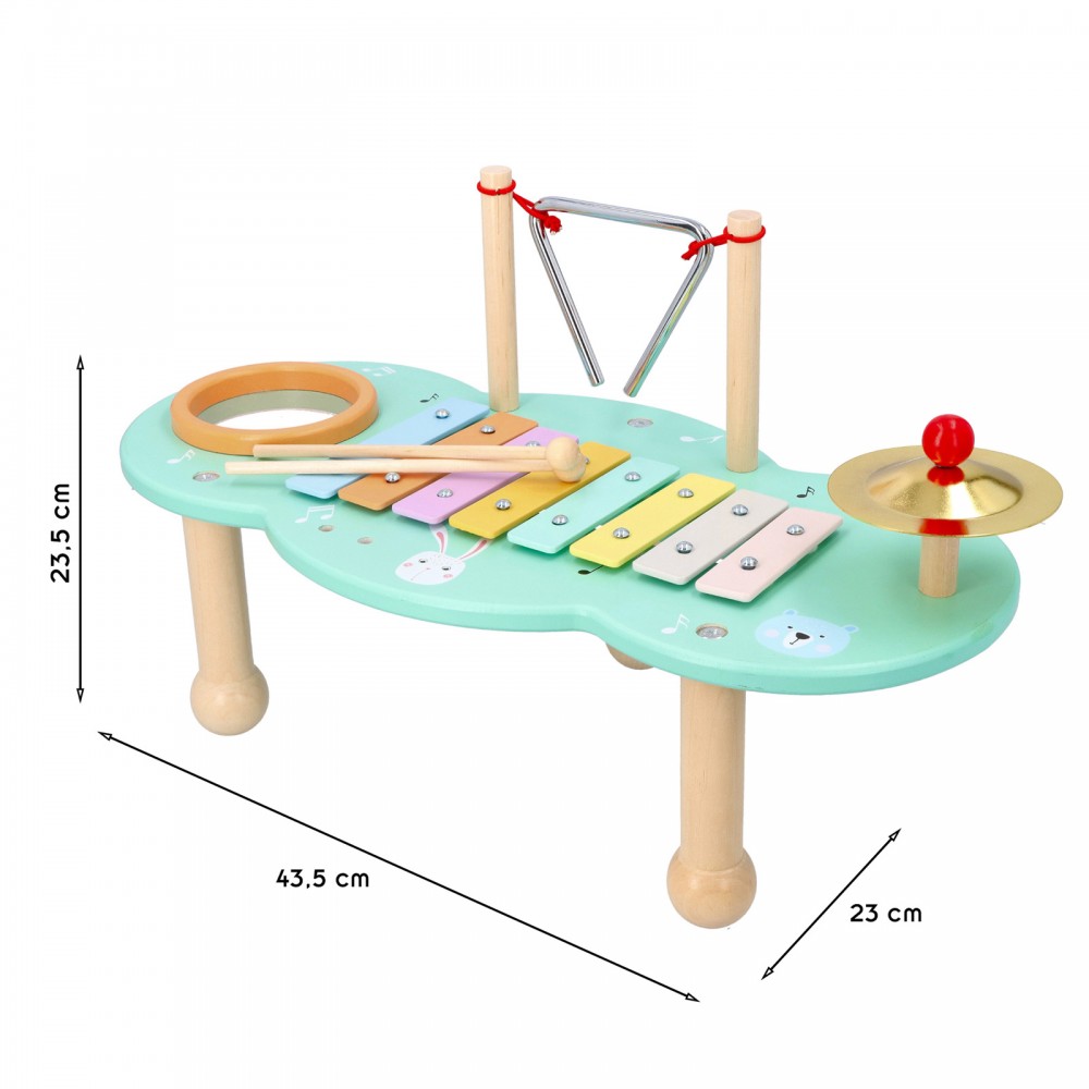 | bulletpointA | Cette table musicale regroupe quatre instruments. Votre enfant adorera ses belles couleurs. |