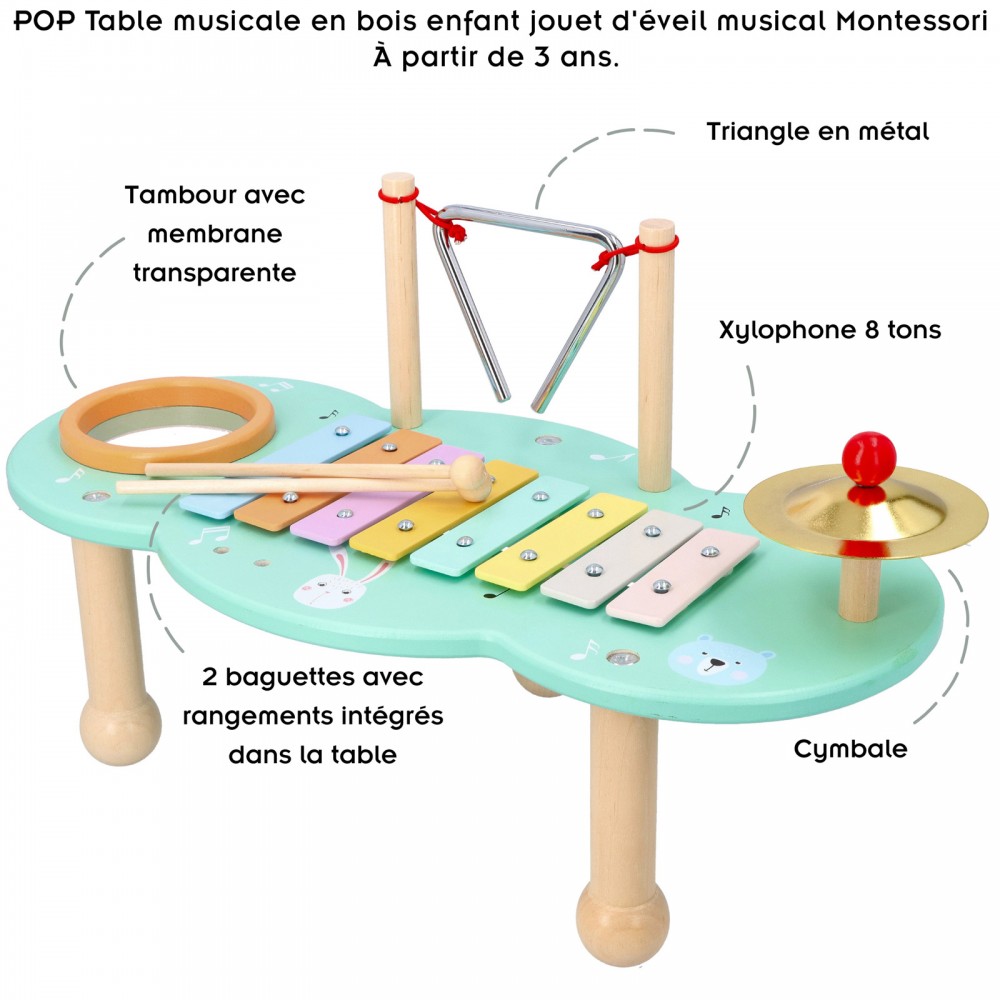 | bulletpointB | La table a été conçue pour développer son intérêt pour la musique dès le plus jeune âge. |