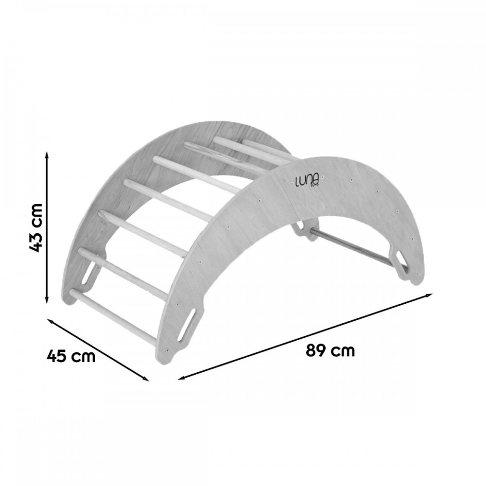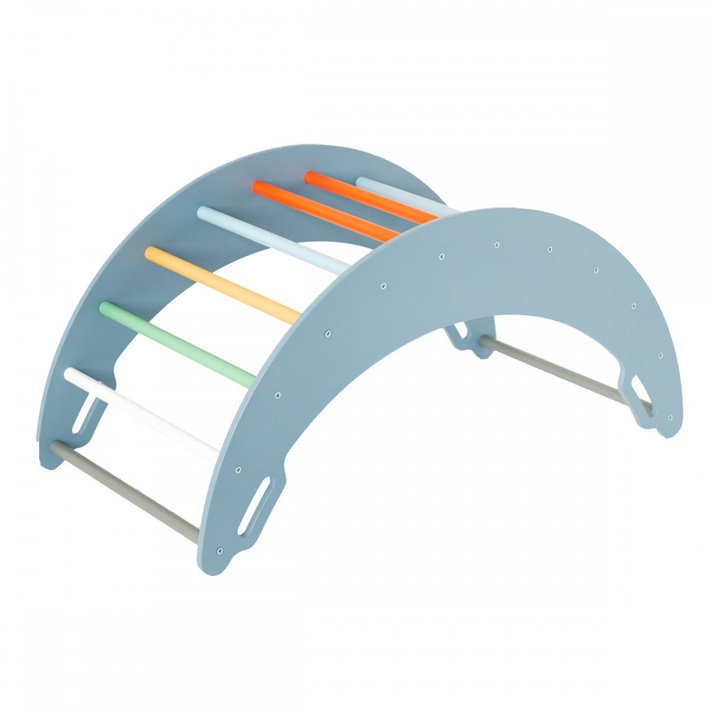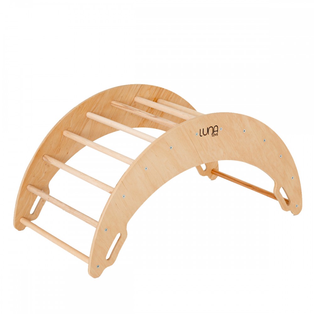 Cette arche est inspirée de la pédagogie Montessori. Elle peut être positionnée à l'endroit comme arche à escalader ou à l'envers comme arche à bascule.