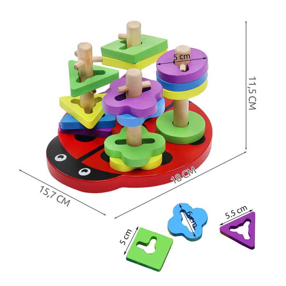 Un jeu d'habileté pour les mains des plus petits ! Avec la coccinelle maligne et ses formes à empiler, la motricité de l'enfant est stimulée. Ce jouet en bois stimule l'imagination, la coordination motrice, la créativité et la logique de l'enfant. Les blocs devront être manipulés plusieurs fois avant de pouvoir être empilés ou retirés des tiges. Plusieurs obstacles qui ne sont pas alignés obligeront l'enfant à faire preuve de logique et de patience.