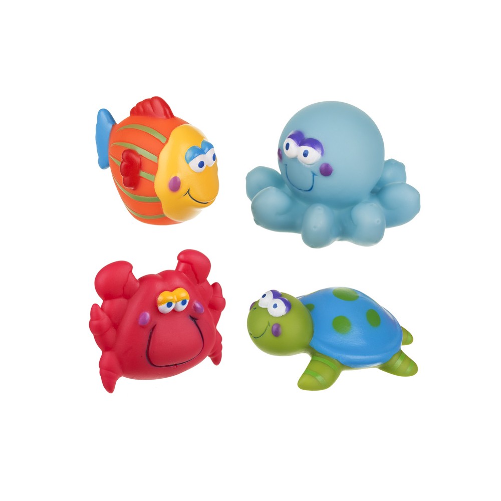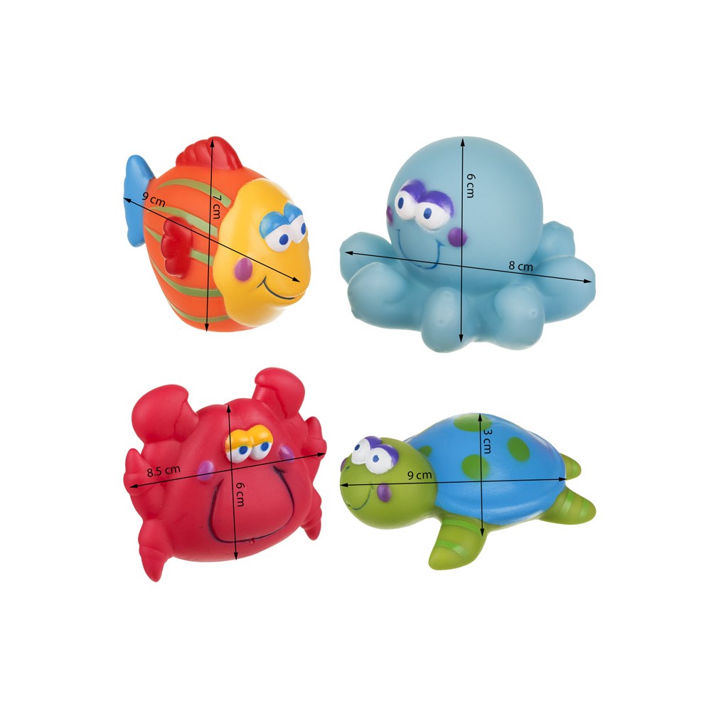 | bulletpointB | Lot de 4 animaux : 1 pieuvre, 1 poisson, 1 crabe et 1 tortue, garantis sans bisphénol A. |