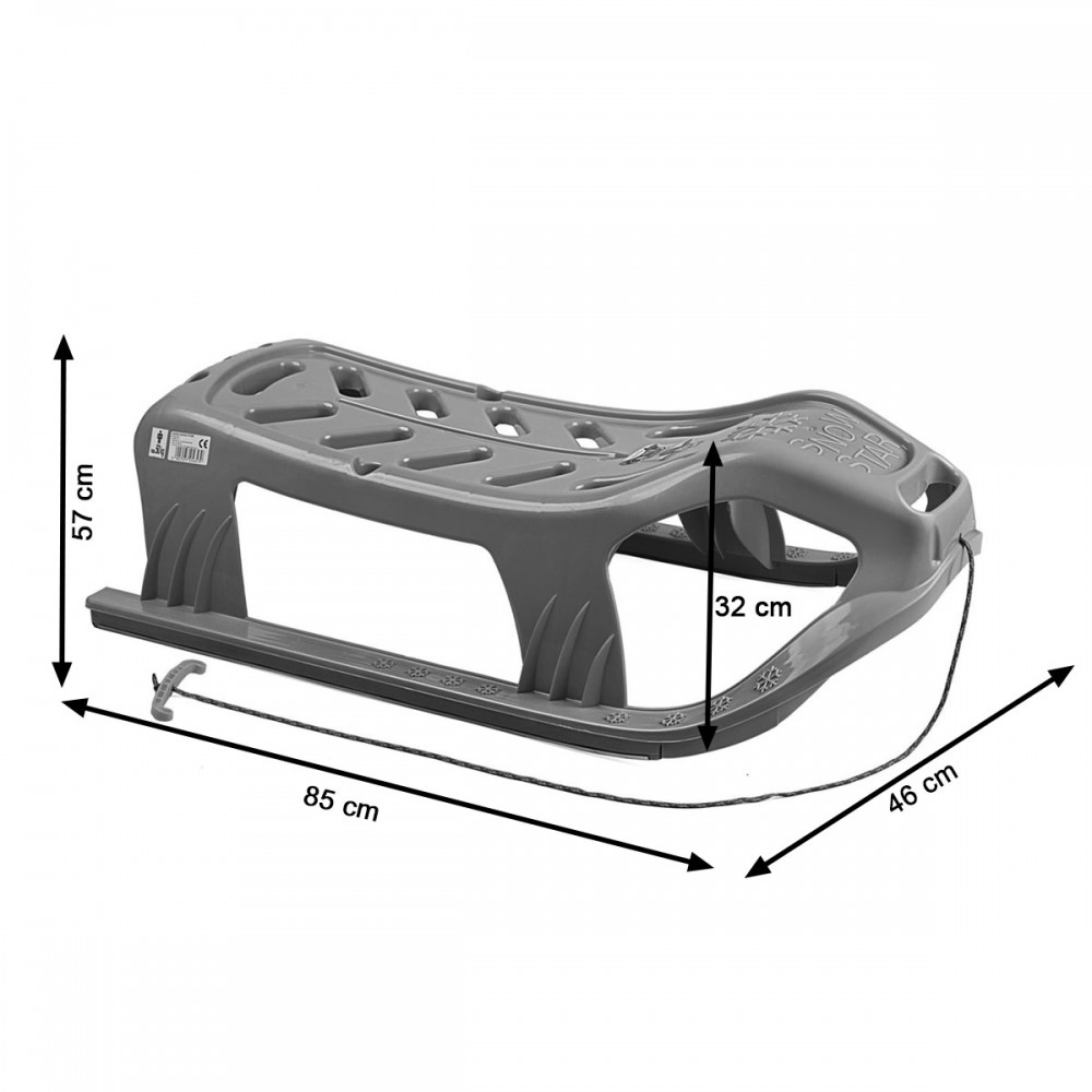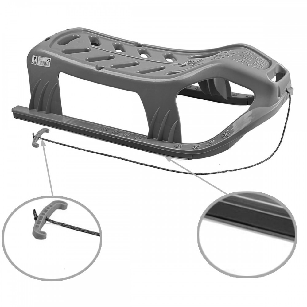 | bulletpointC | Une corde avec poignée permet de tracter cette luge haute. |