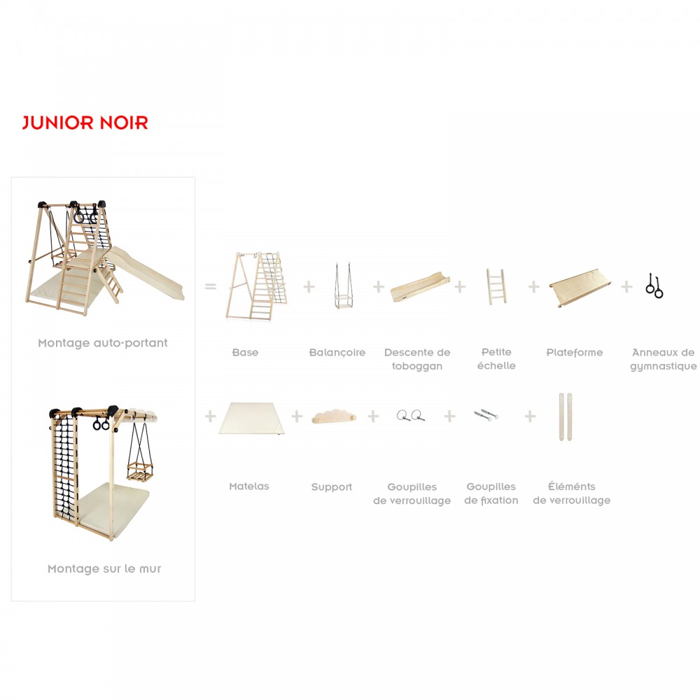 Possibilité d’ajouter des éléments pour que l’air de jeu soit plus grande et complete (tente, mur d’escalade).