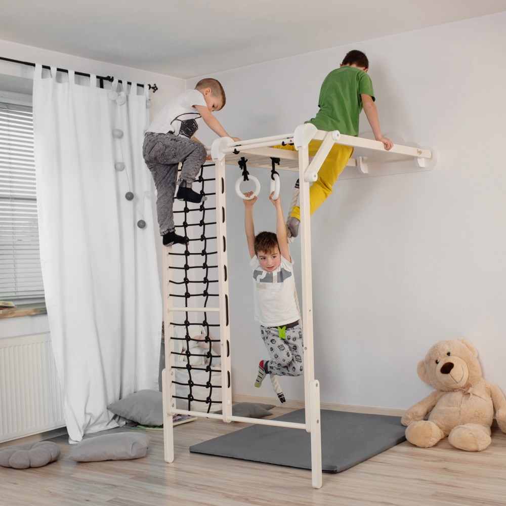 Ce terrain de jeu est un complexe sportif installable en intérieur. Utilisable quelque soit la saison et le temps qu’il fait dehors, les enfants pourront toujours s’amuser et se dépenser avec JUNIOR.