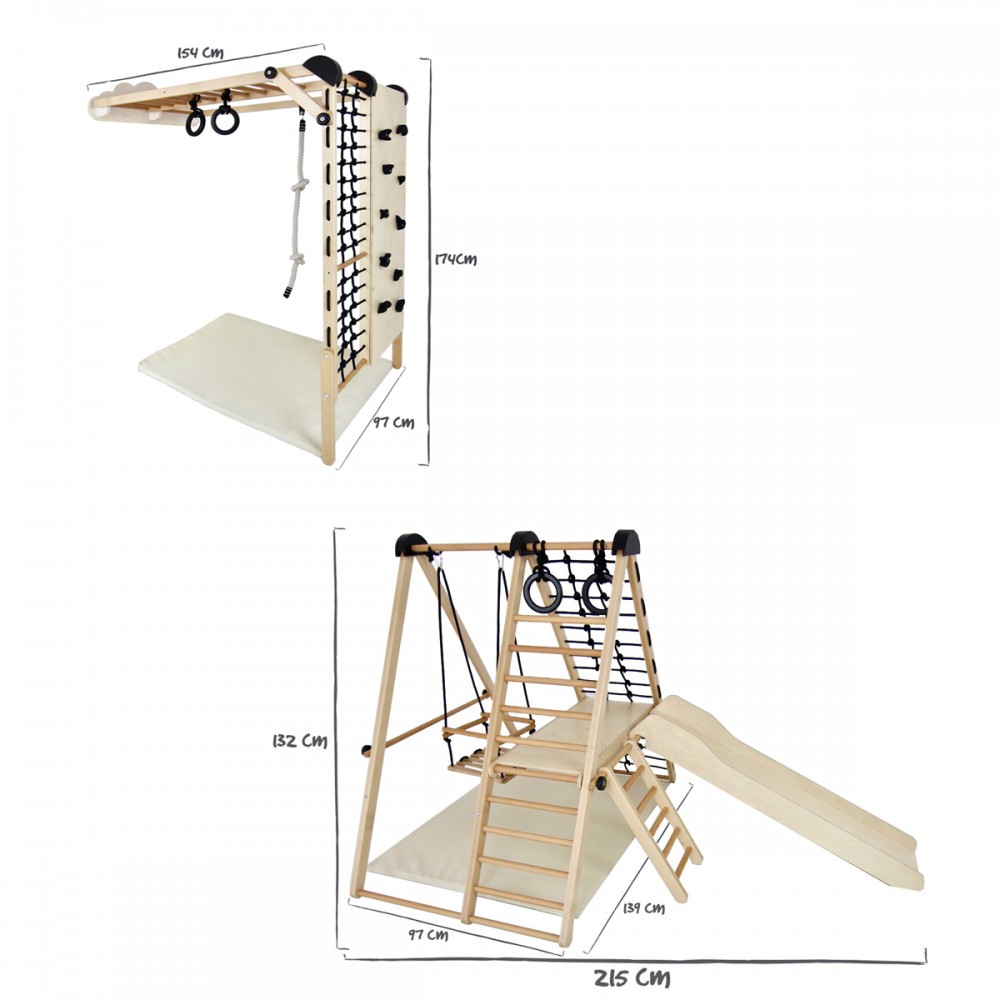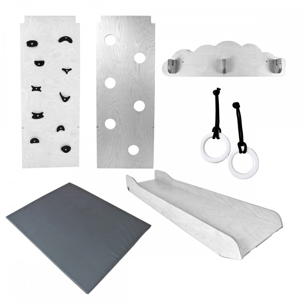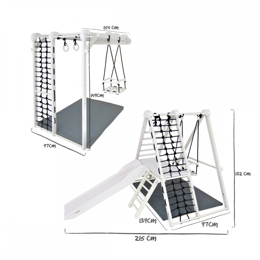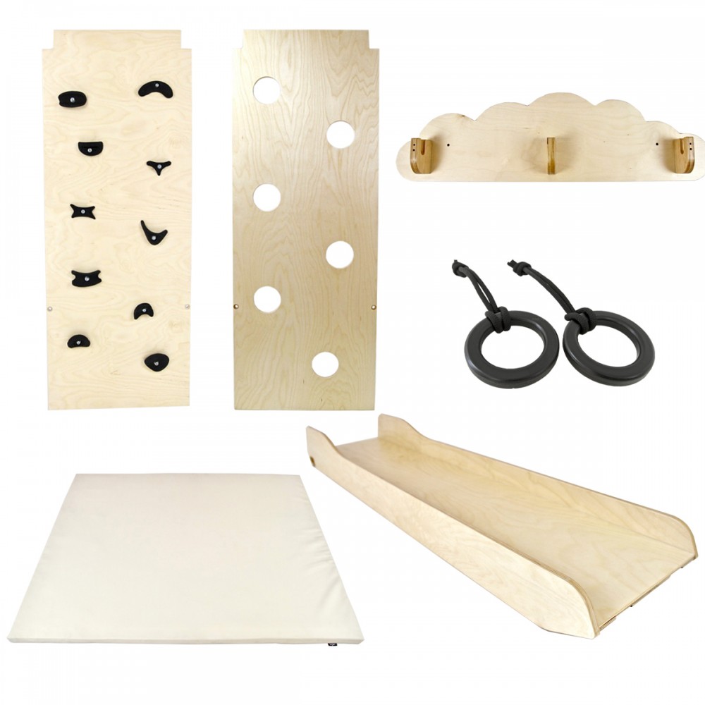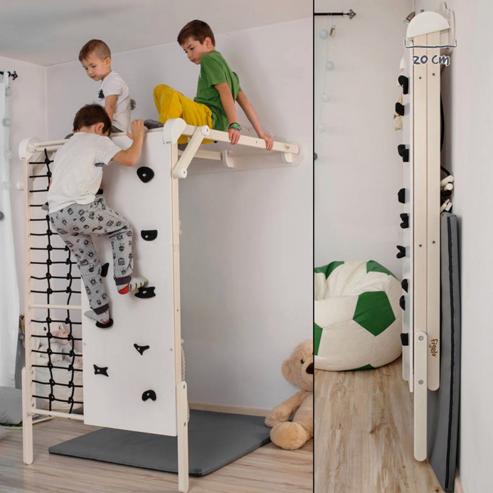 Dès 6 mois, les enfants pourront se dépenser et jouer dans ce terrain de jeu d’intérieur. Modulable, il peut être utilisé en version autoportante ou fixé au mur. Ces deux modules permettent une multitude d’activités. Cette aire de jeux est idéale pour développer la motricité dès le plus jeune âge, favoriser l’imagination et stimuler la créativité. Les enfants découvrent leurs propres capacités et leurs propres limites.