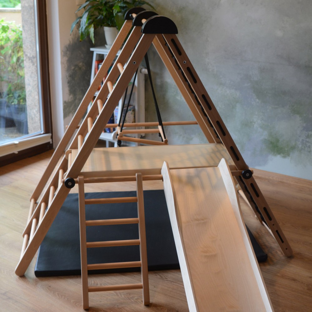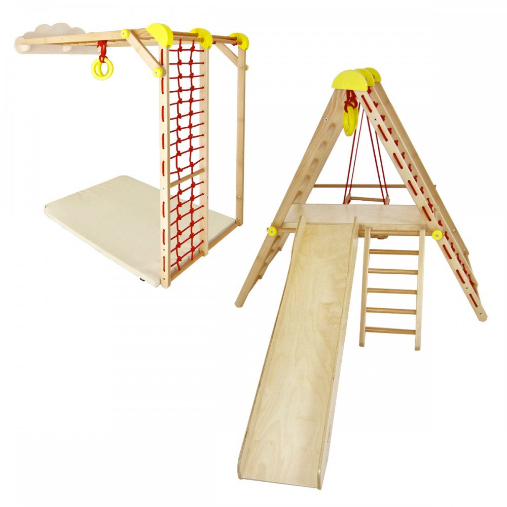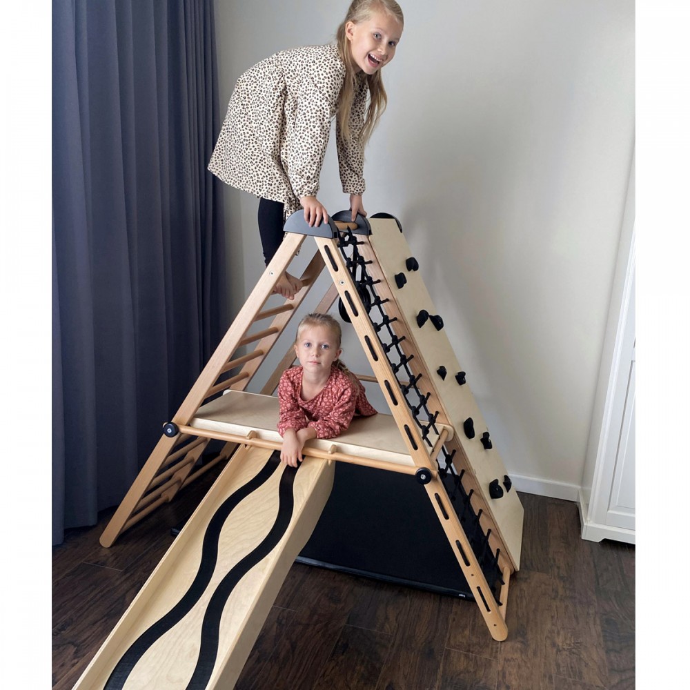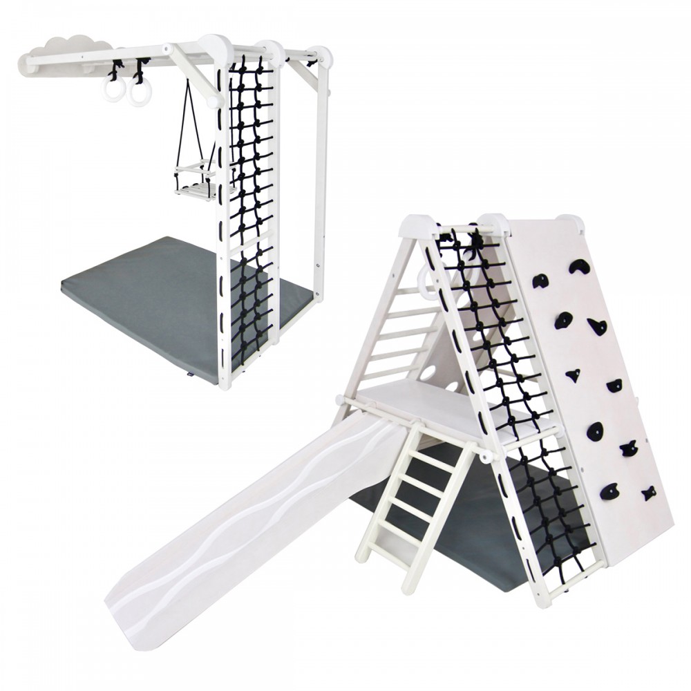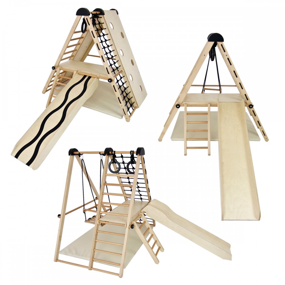 Dès 6 mois, les enfants pourront se dépenser et jouer dans ce terrain de jeu d’intérieur. Modulable, il peut être utilisé en version autoportante ou fixé au mur. Ces deux modules permettent une multitude d’activités. Cette aire de jeux est idéale pour développer la motricité dès le plus jeune âge, favoriser l’imagination et stimuler la créativité. Les enfants découvrent leurs propres capacités et leurs propres limites.