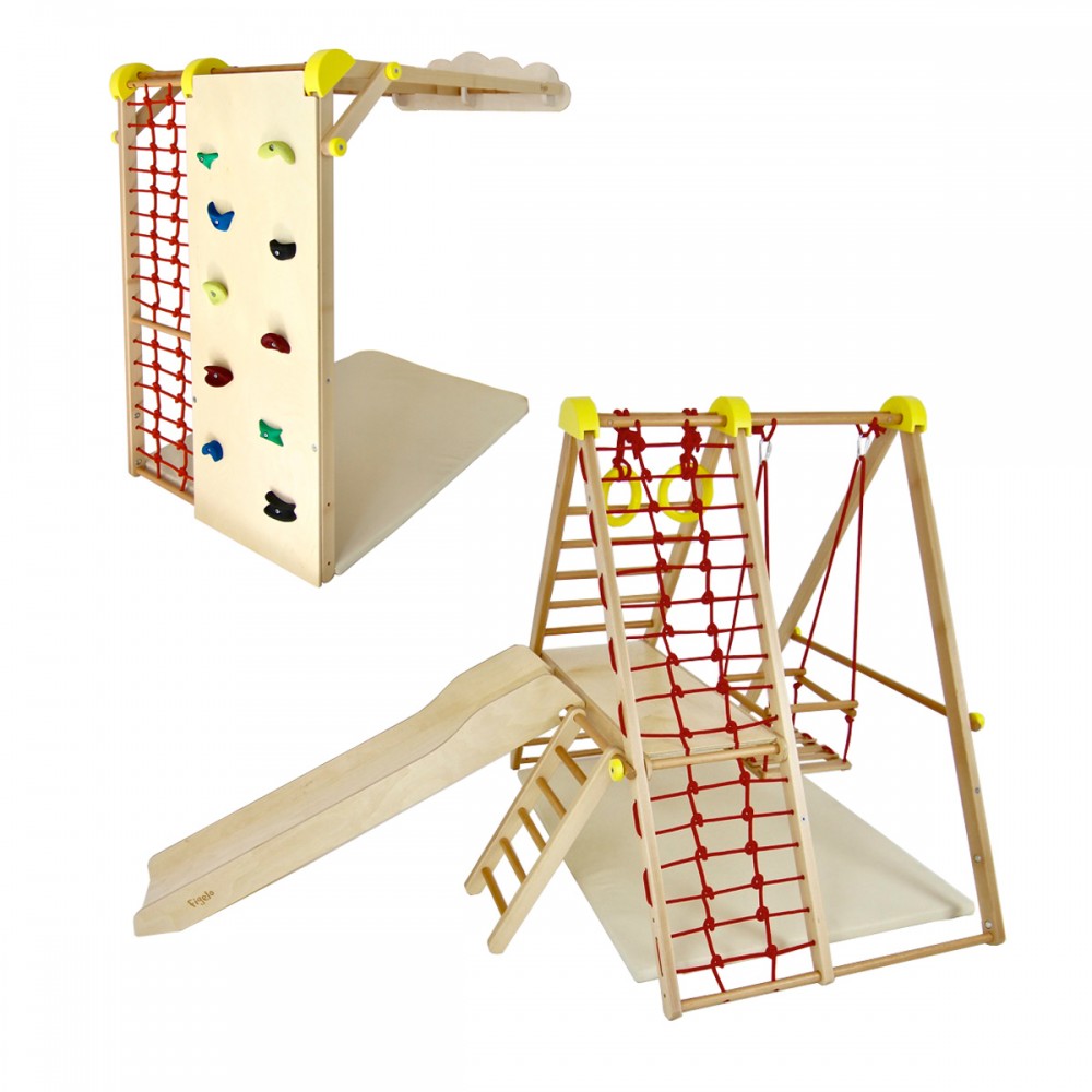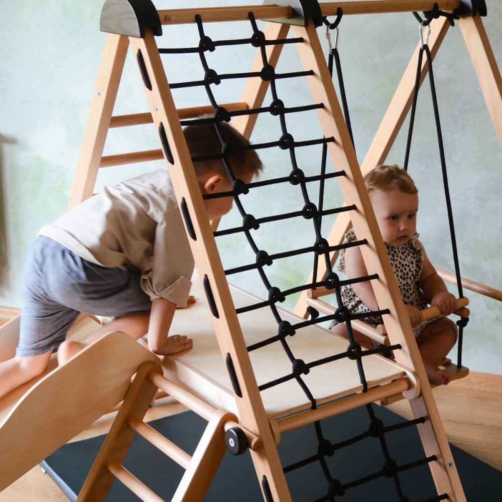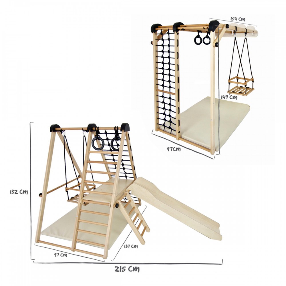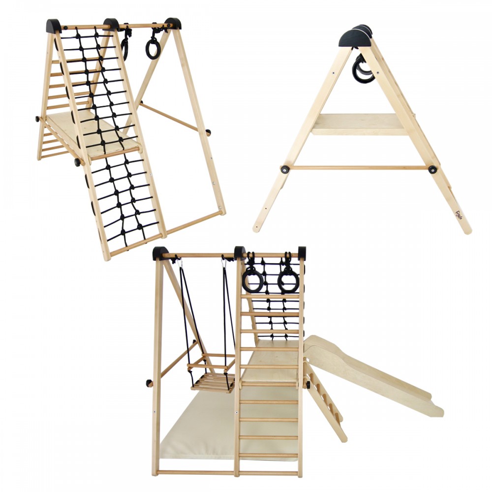 | bulletpointA | Aire de jeux en bois pour enfants dès 6 mois pour l'intérieur. Structure modulable en version murale et autoportée. |