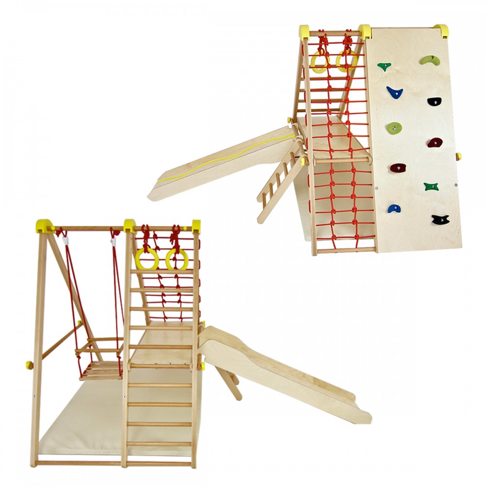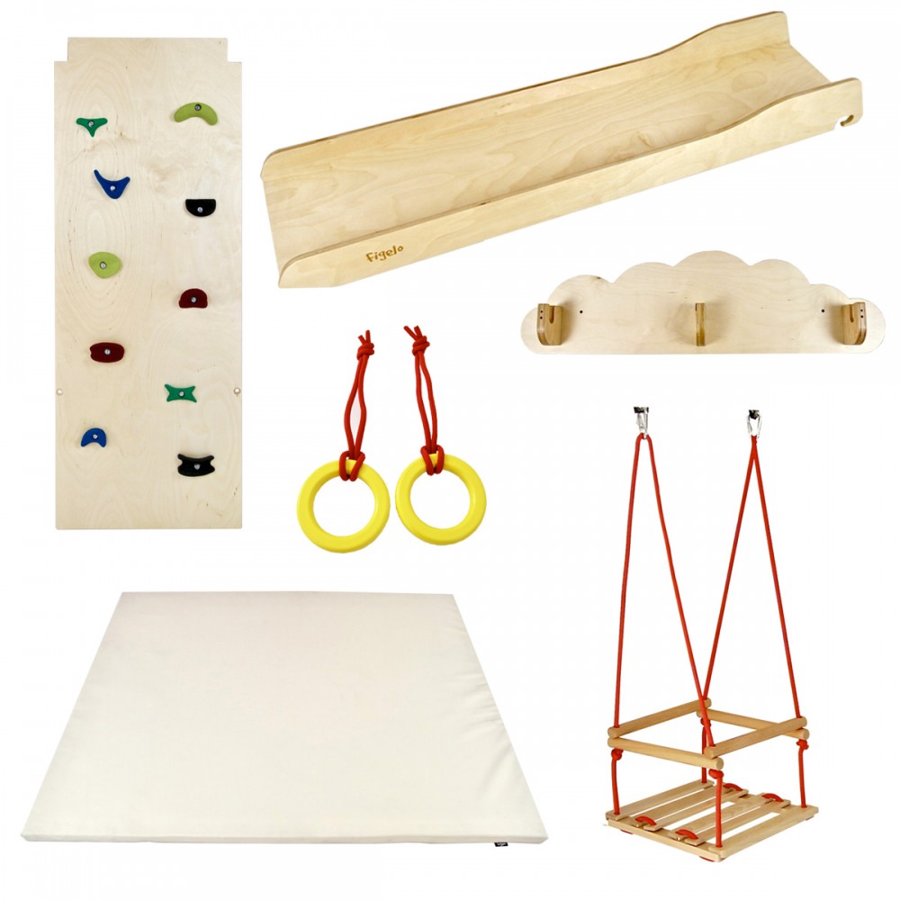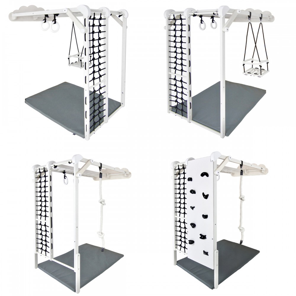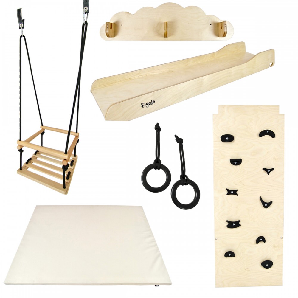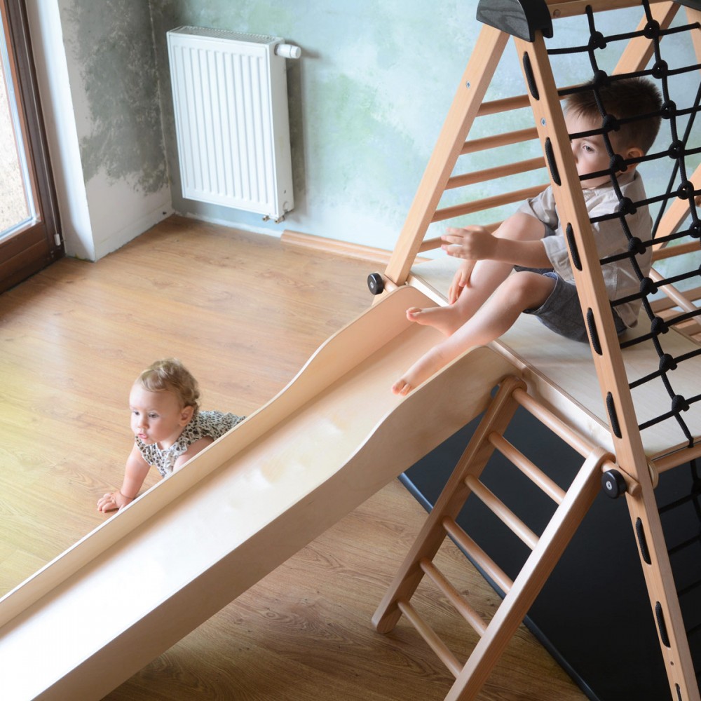 | bulletpointA | Aire de jeux en bois pour enfants dès 6 mois pour l'intérieur. Structure modulable en version murale et autoportée. |