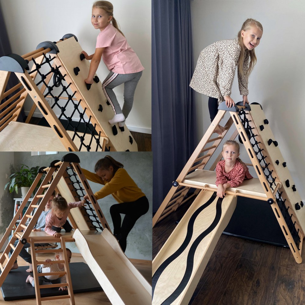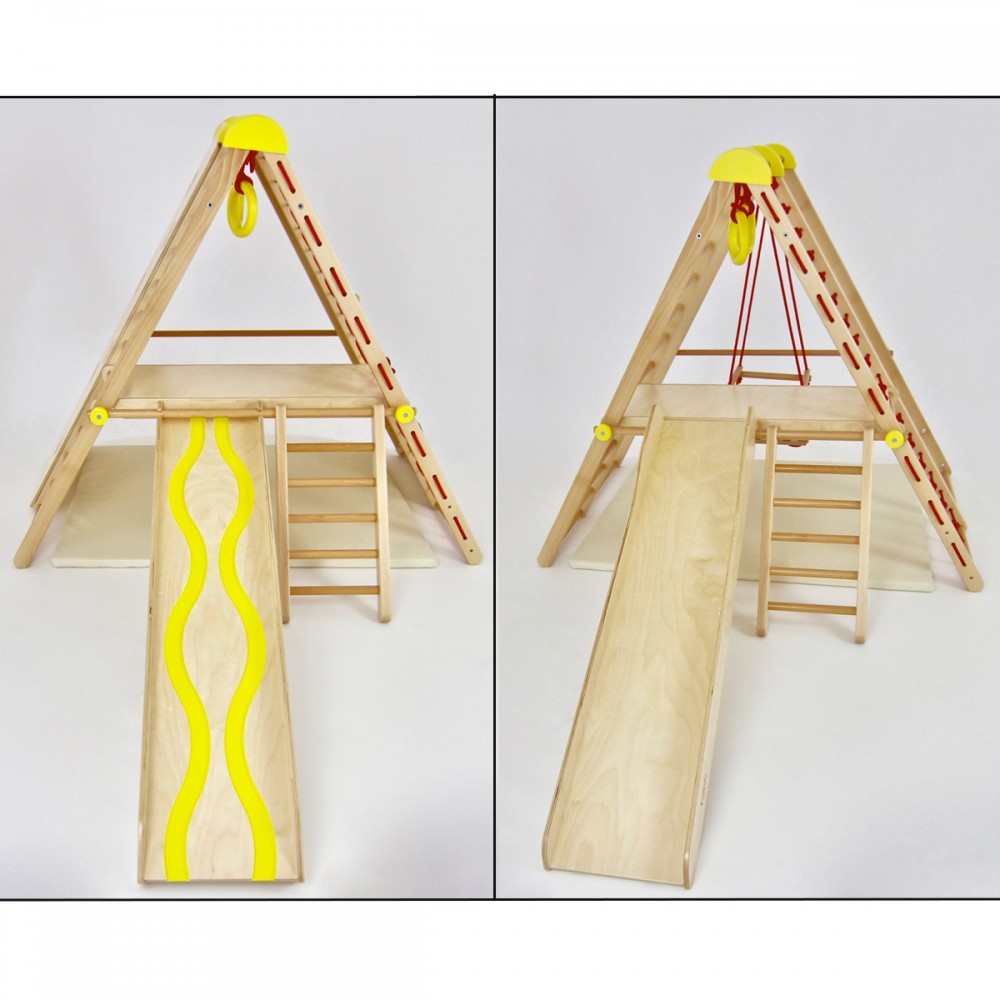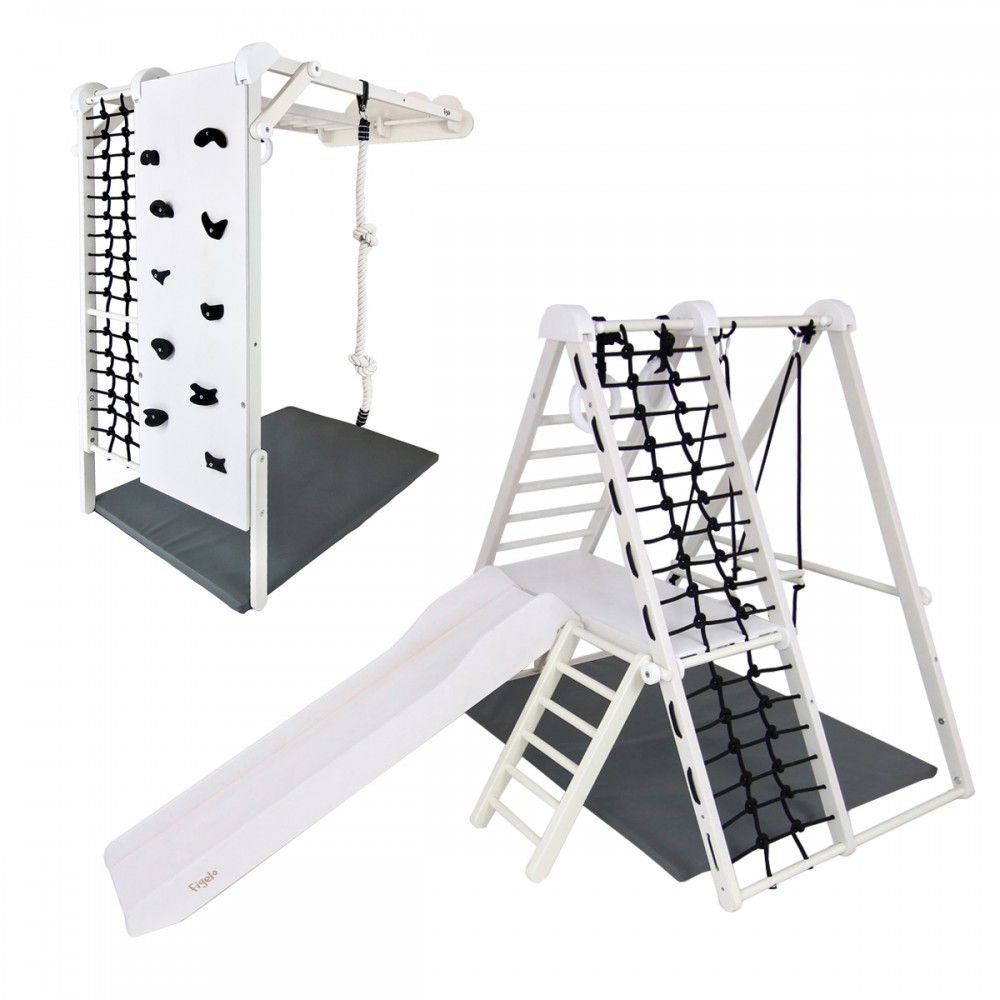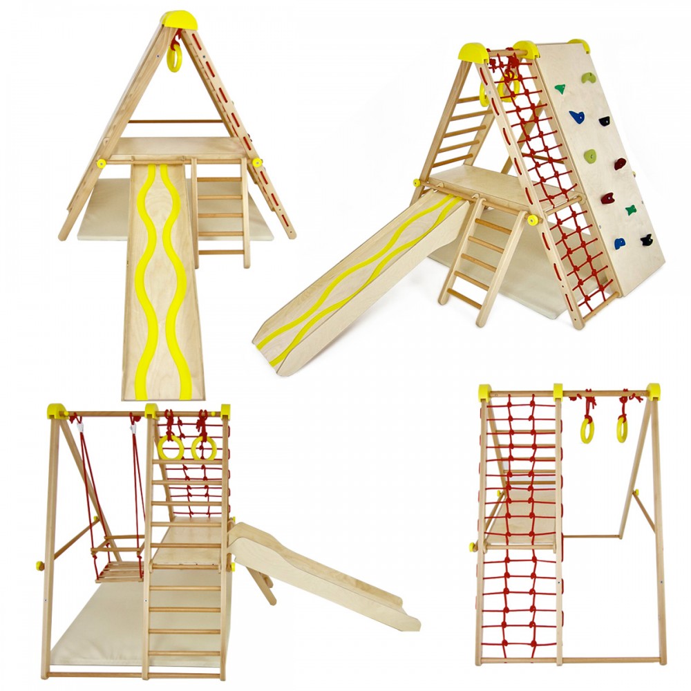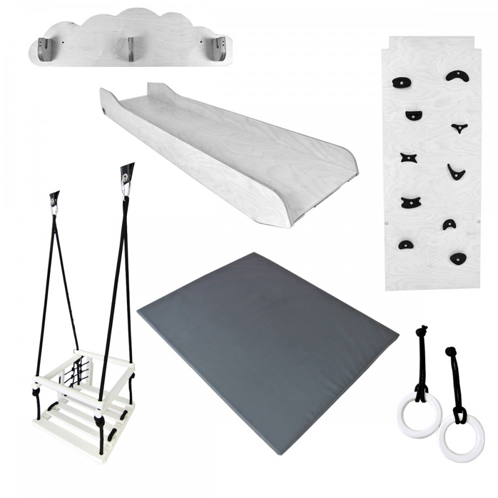 | bulletpointA | Aire de jeux en bois pour enfants dès 6 mois pour l'intérieur. Structure modulable en version murale et autoportée. |