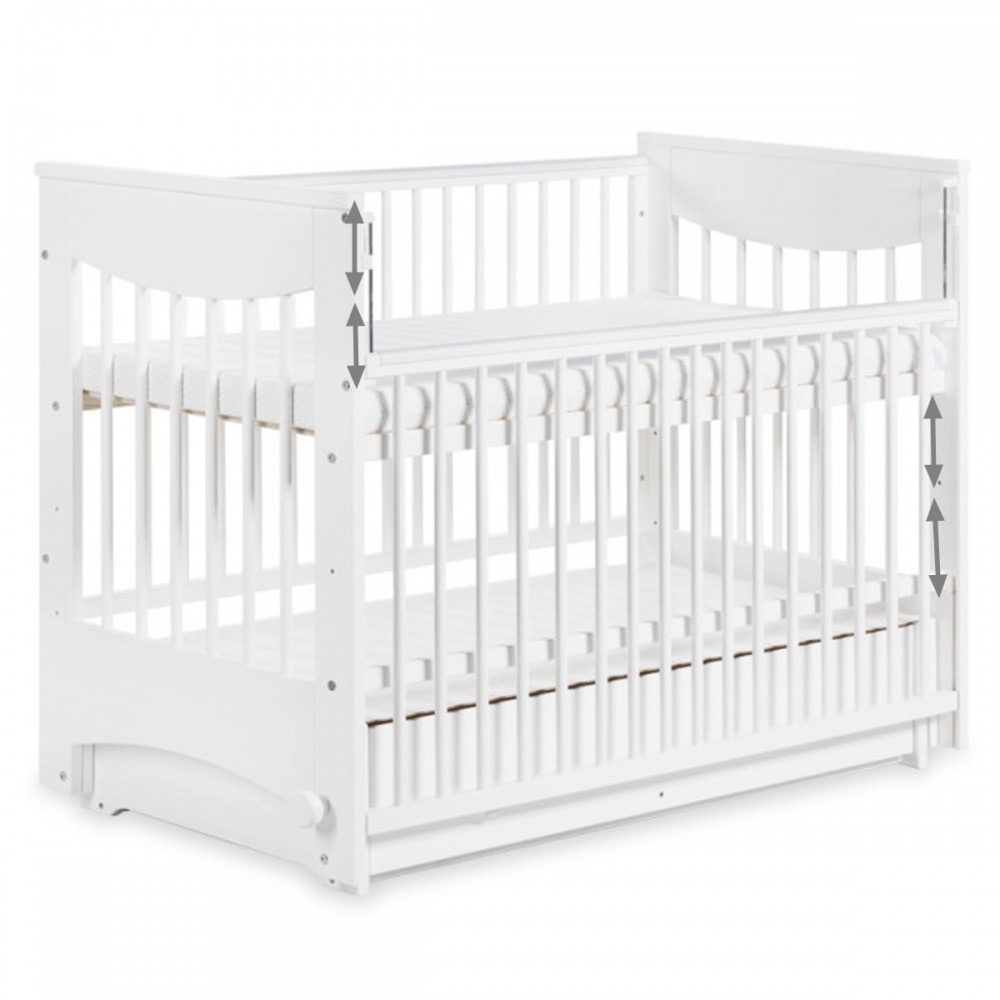 | bulletpointB | Sommier réglable en hauteur sur 3 positions. La barrière du lit est coulissante |