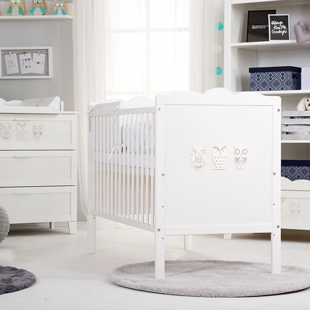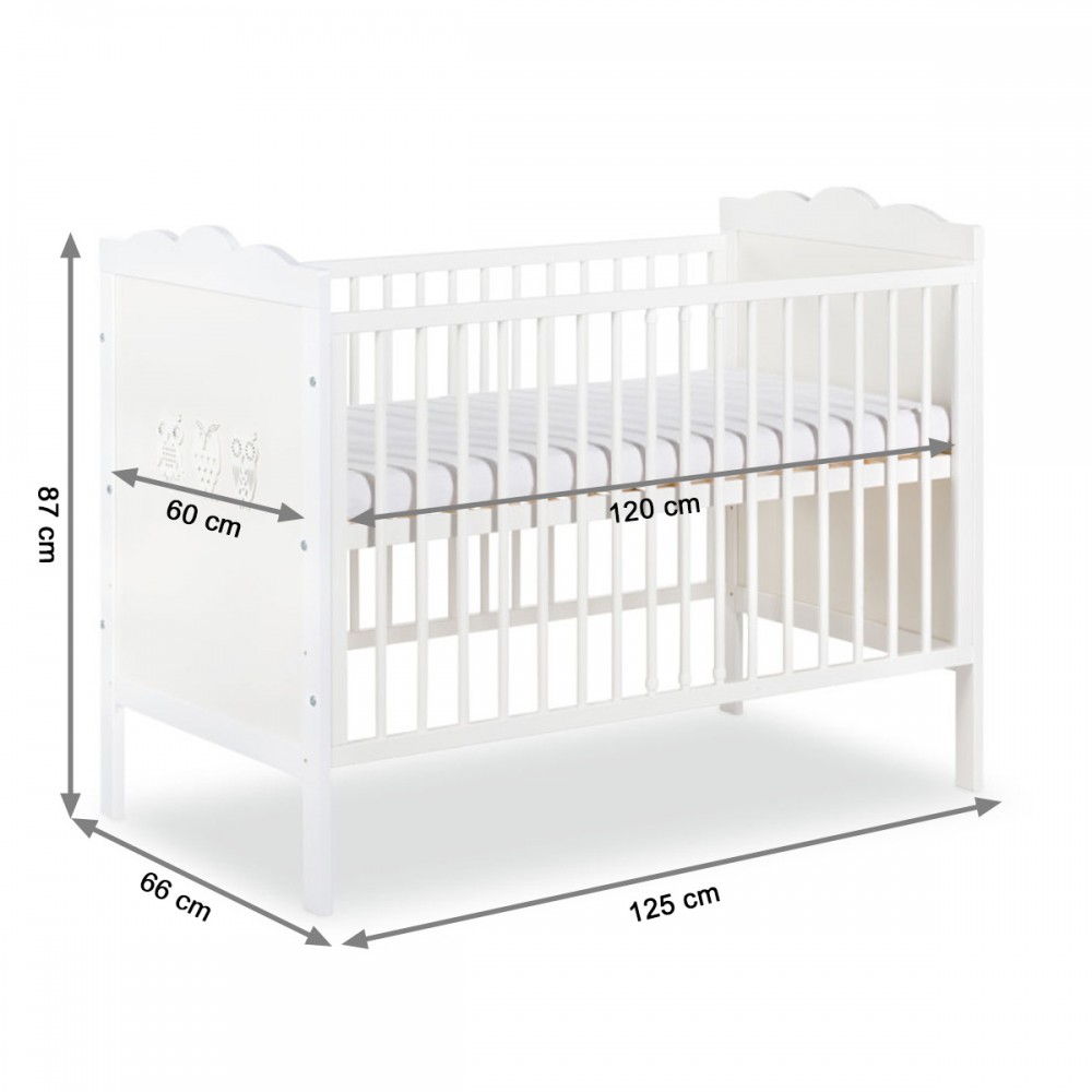 Lit bébé en pin massif et en MDF peint avec une peinture à l'eau, non toxique. Le lit est équipé de 3 barreaux amovibles qui permettent à votre enfant de sortir et d'entrer seul quand il est plus grand.