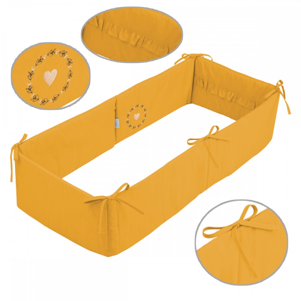 Joli tour de lit doux et respirant pour bébé avec broderie et volants.