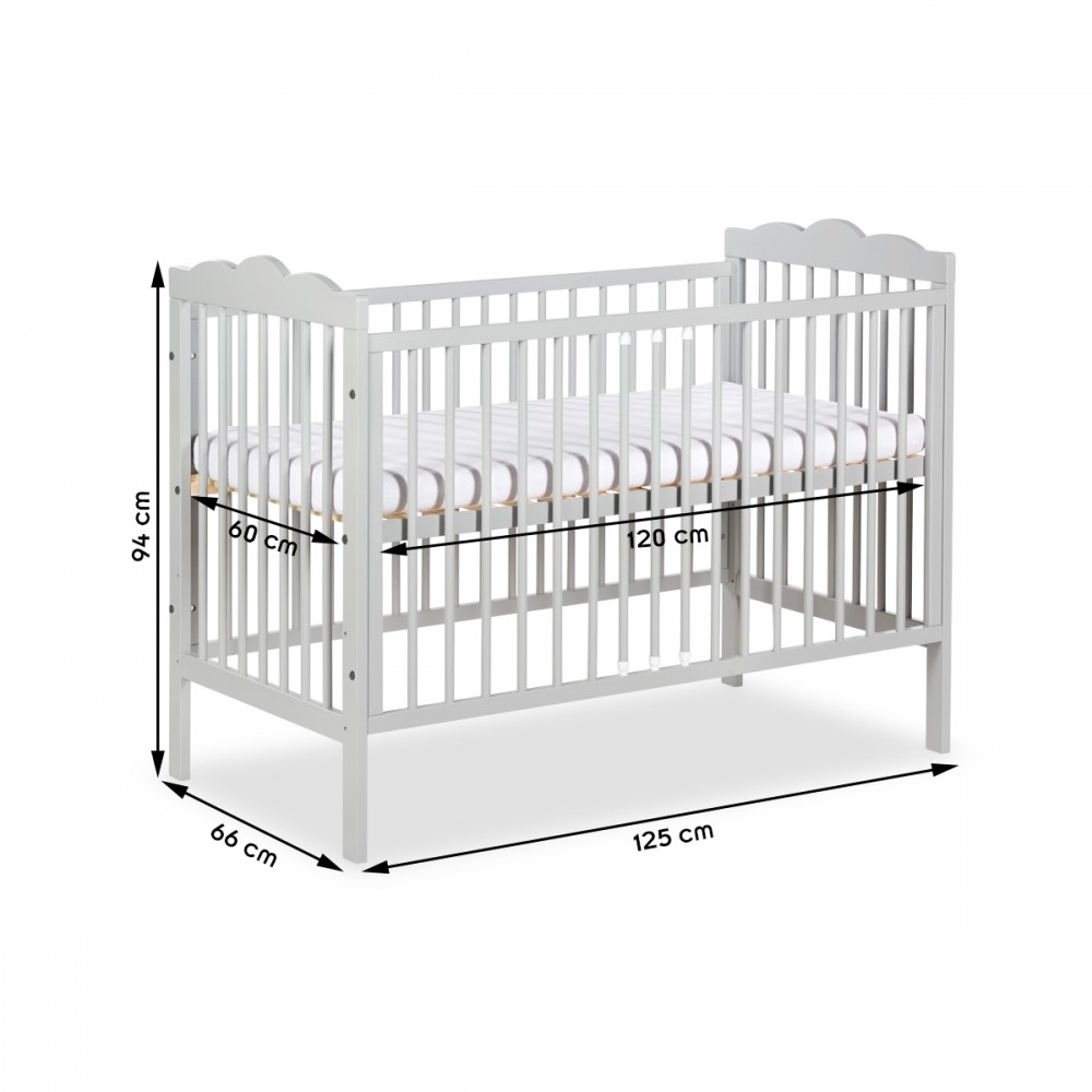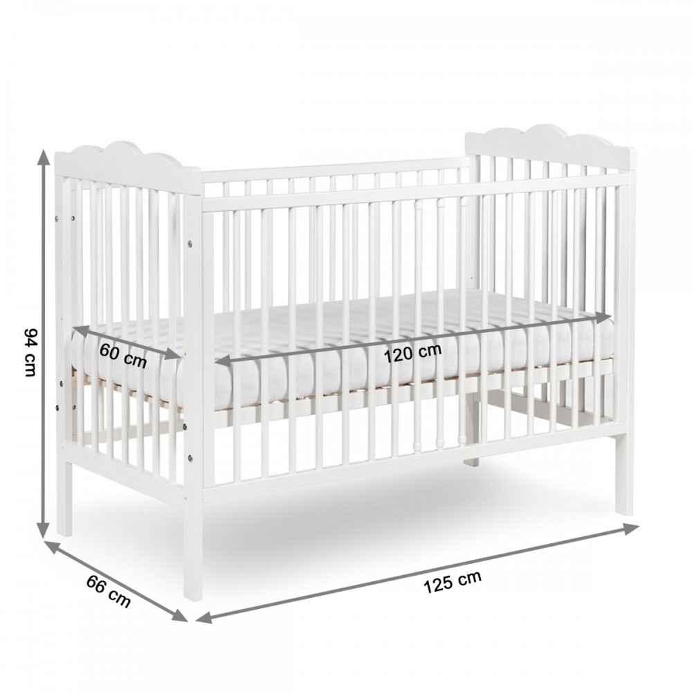 | bulletpointA | Lit bébé RADEK en bois massif de pin, coloré avec de la peinture non toxique pour les enfants. |