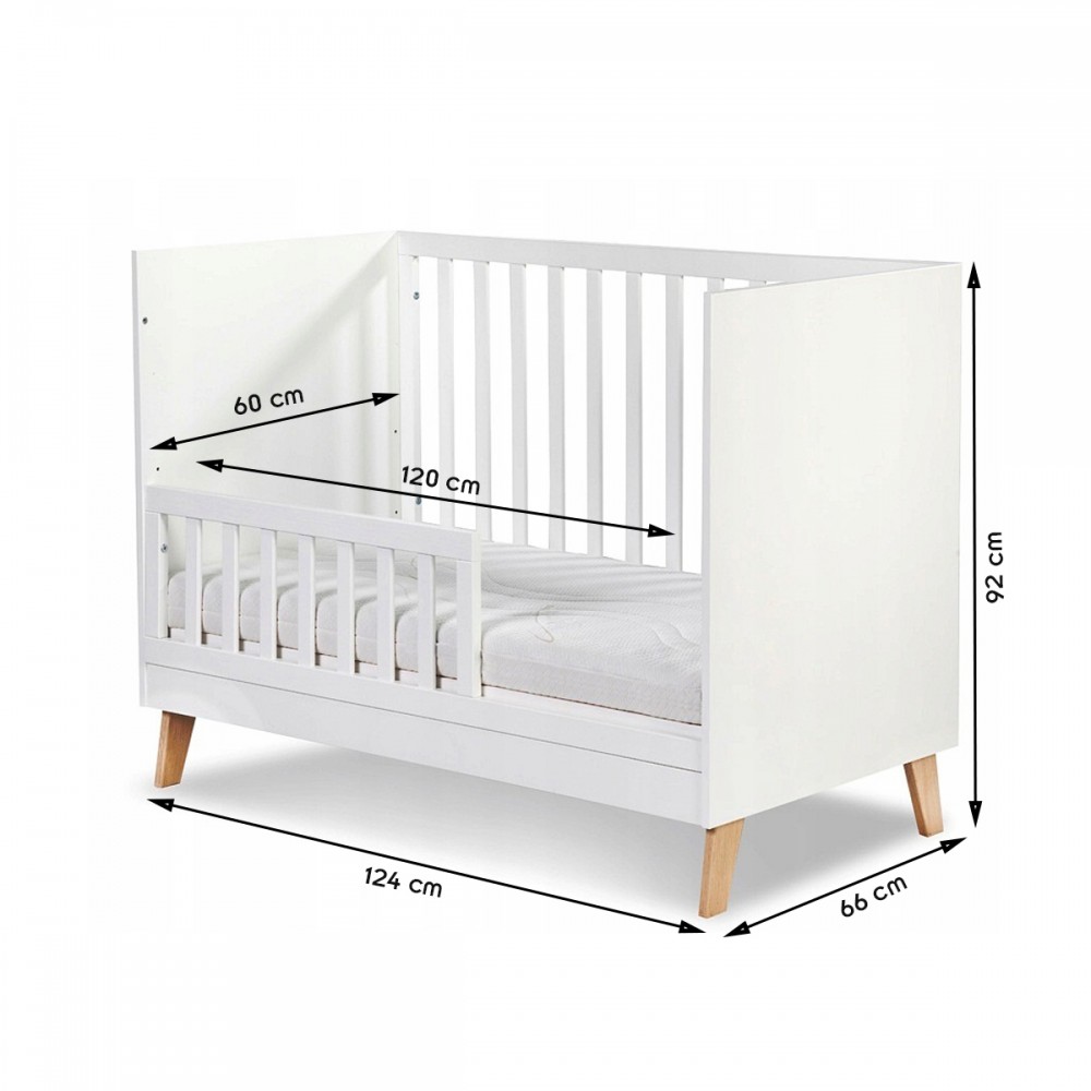 | bulletpointA | Lit évolutif 120x60 cm pour bébé en bois. Hauteur de sommier réglable sur 3 niveaux pour suivre la croissance. |