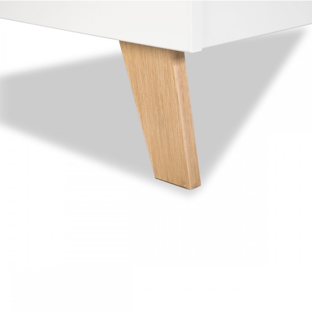 Ses pieds en chêne apportent une finition élégante. Sommier à lattes pour une meilleure circulation de l'air. Fabriqué en pin, MDF et chêne.