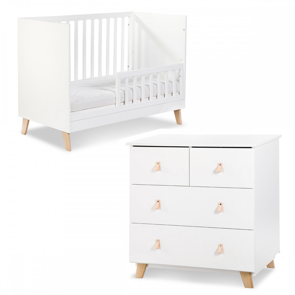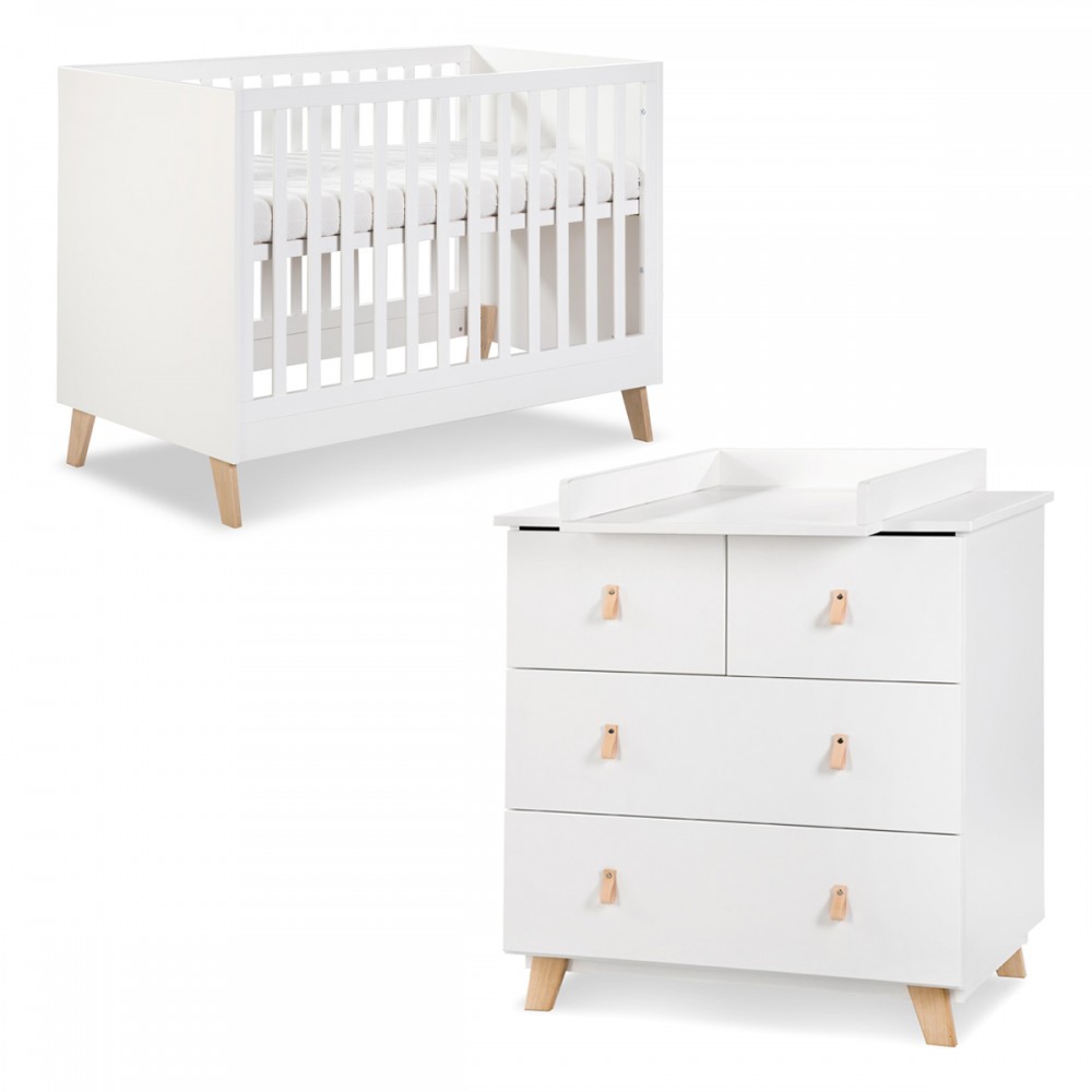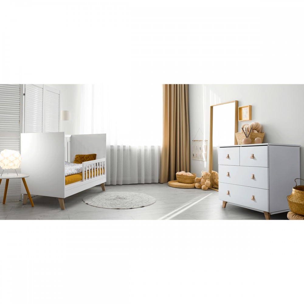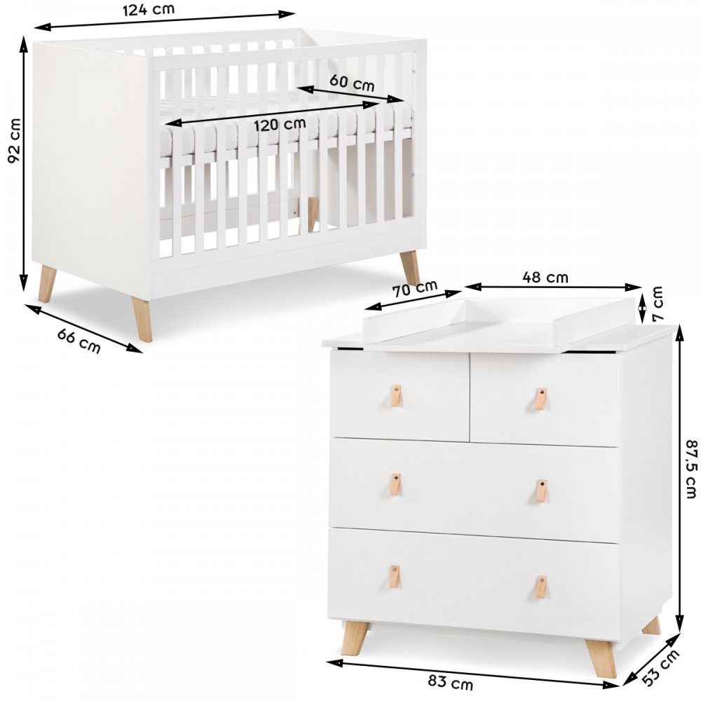 | bulletpointA | Ensemble pour chambre d'enfant composé d'un lit à barreaux évolutif 120x60 cm et d'une commode avec table à langer. |