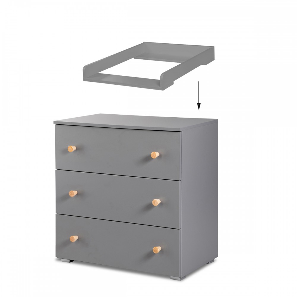 Le plateau à langer (inclus) est indépendant, vous pouvez l’enlever lorsque l’enfant n’a plus besoin de changes.