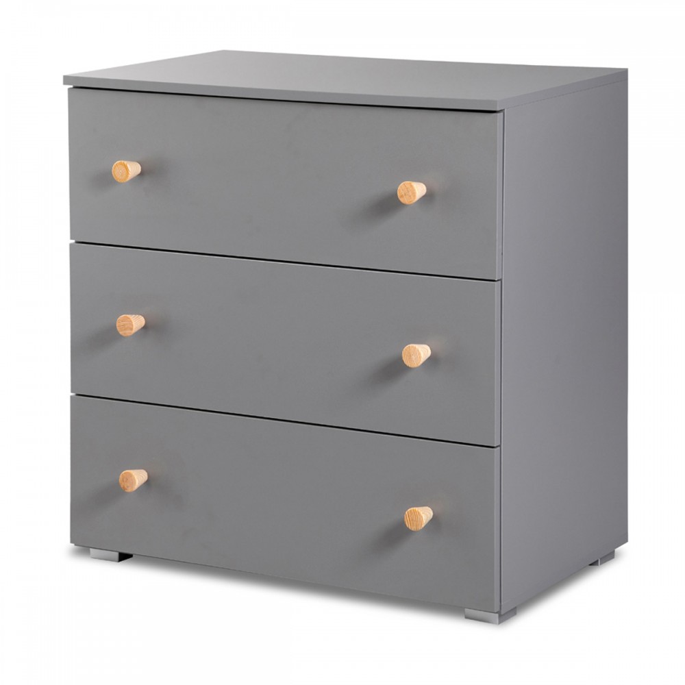 | bulletpointB | Elle est dotée de 3 grands tiroirs sur rails coulissants. Les boutons des tiroirs sont de couleur bois brut. |