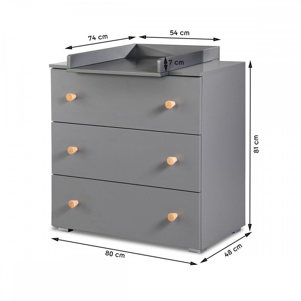 Dimensions commode avec plateau à langer : L 80 cm x l 74 cm x H 88 cm.
