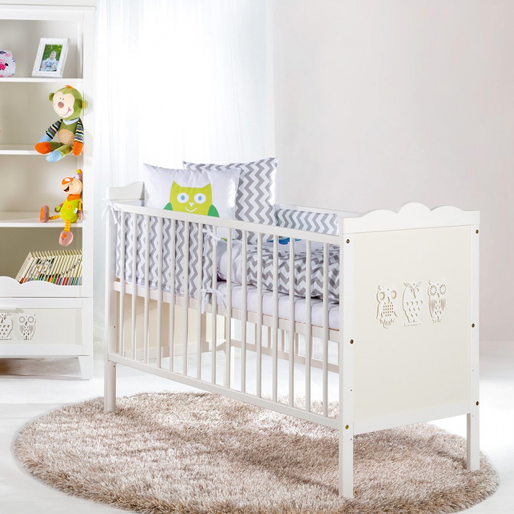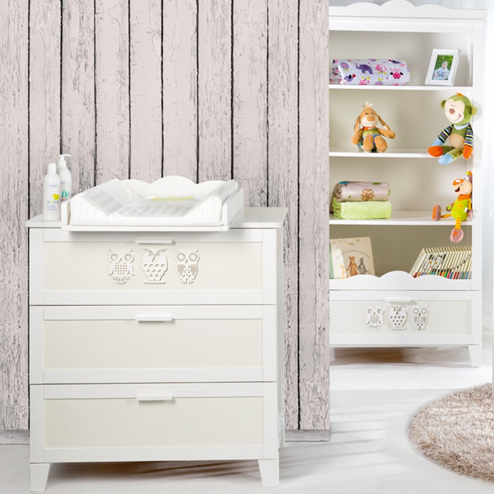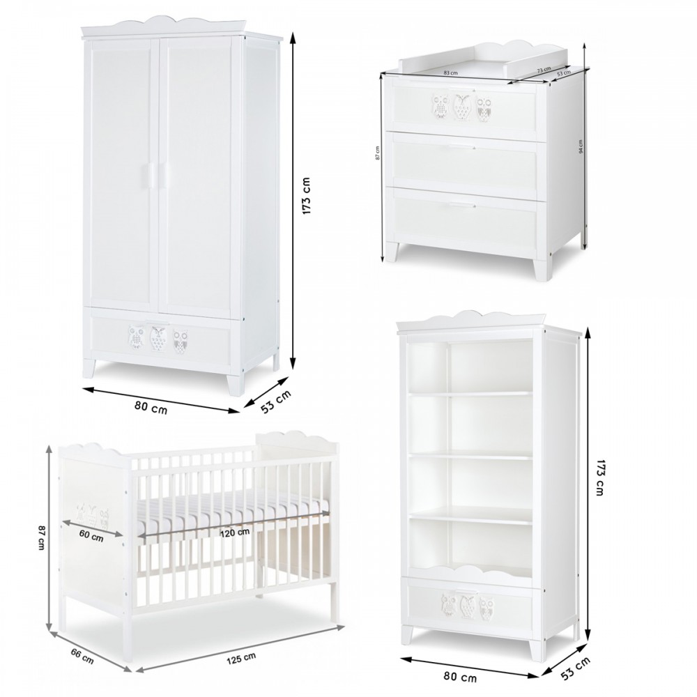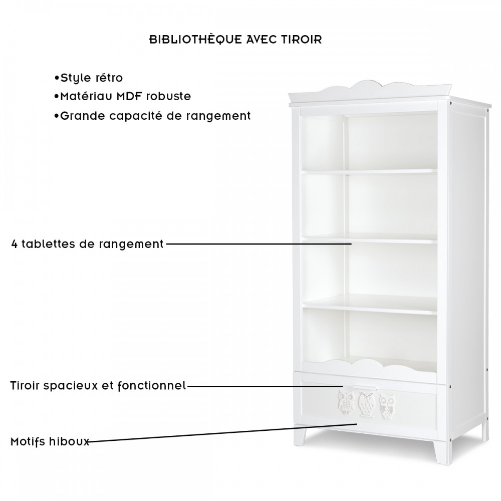Cet ensemble aux motifs hiboux, composé d’un lit, d’une commode à langer, d’une armoire et d’une bibliothèque, est parfait pour aménager la chambre de votre enfant dans un style doux et chaleureux.