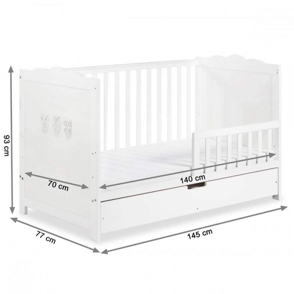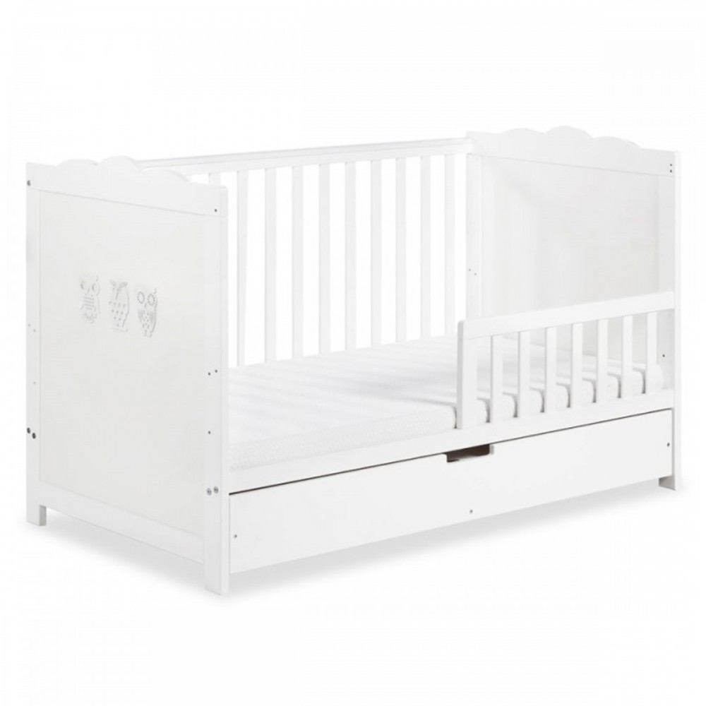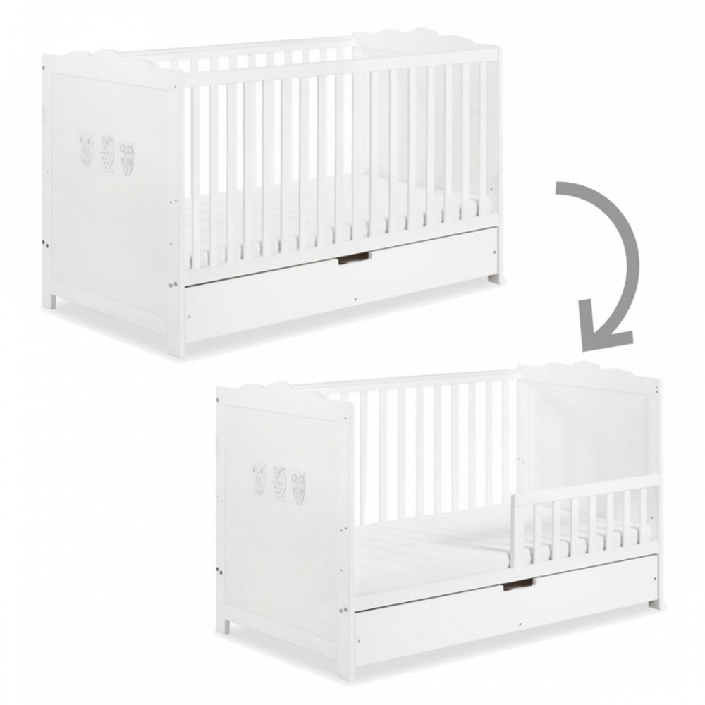 | bulletpointB | Lit évolutif avec tiroir, sommier à lattes réglable, un côté amovible remplacé par une barrière de protection. |
